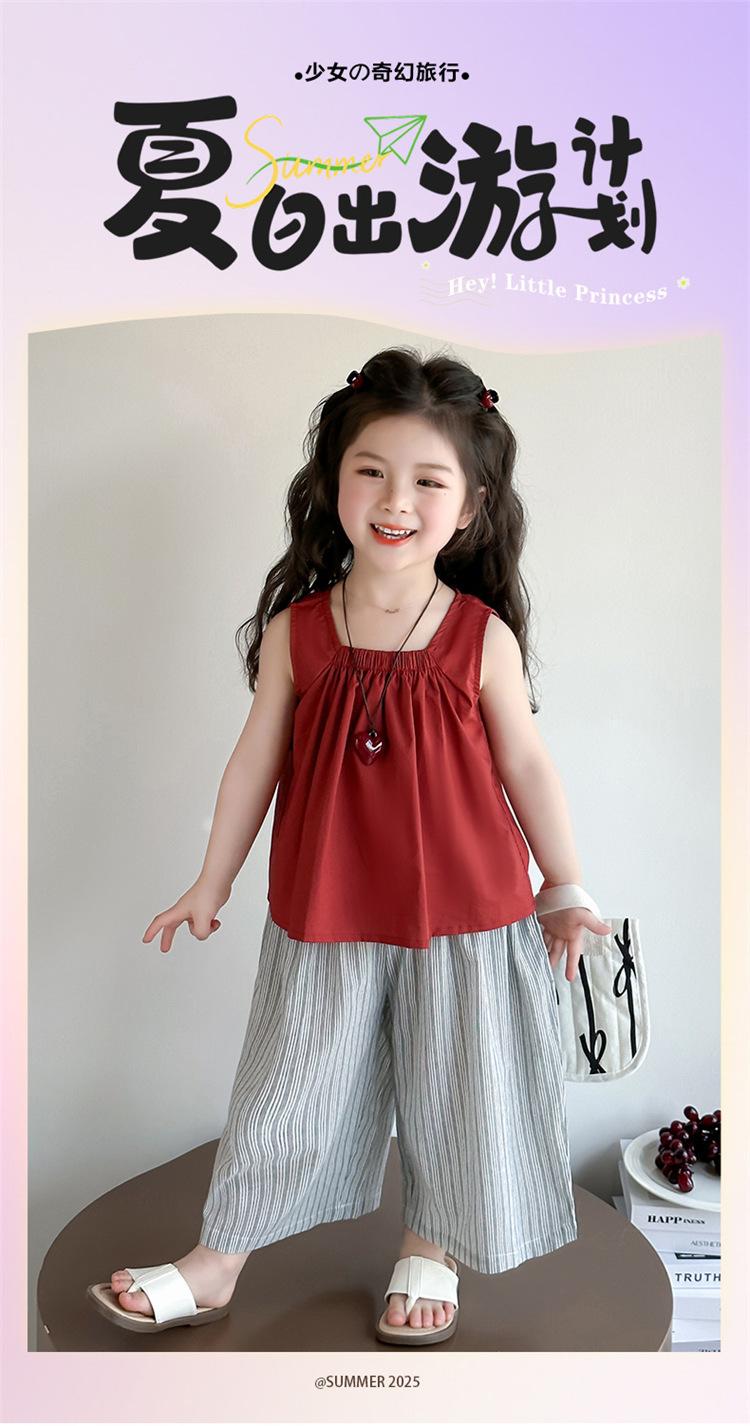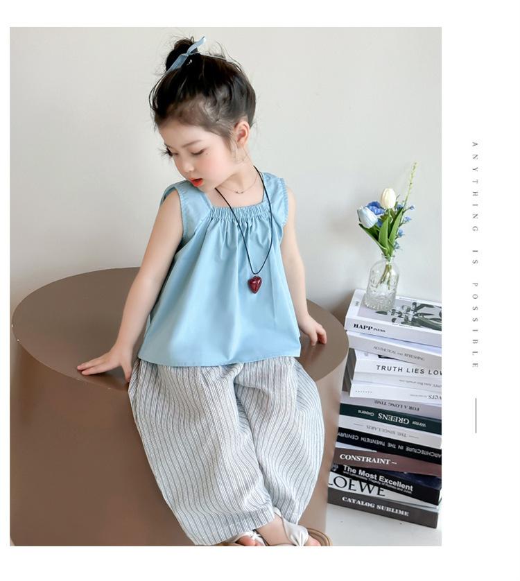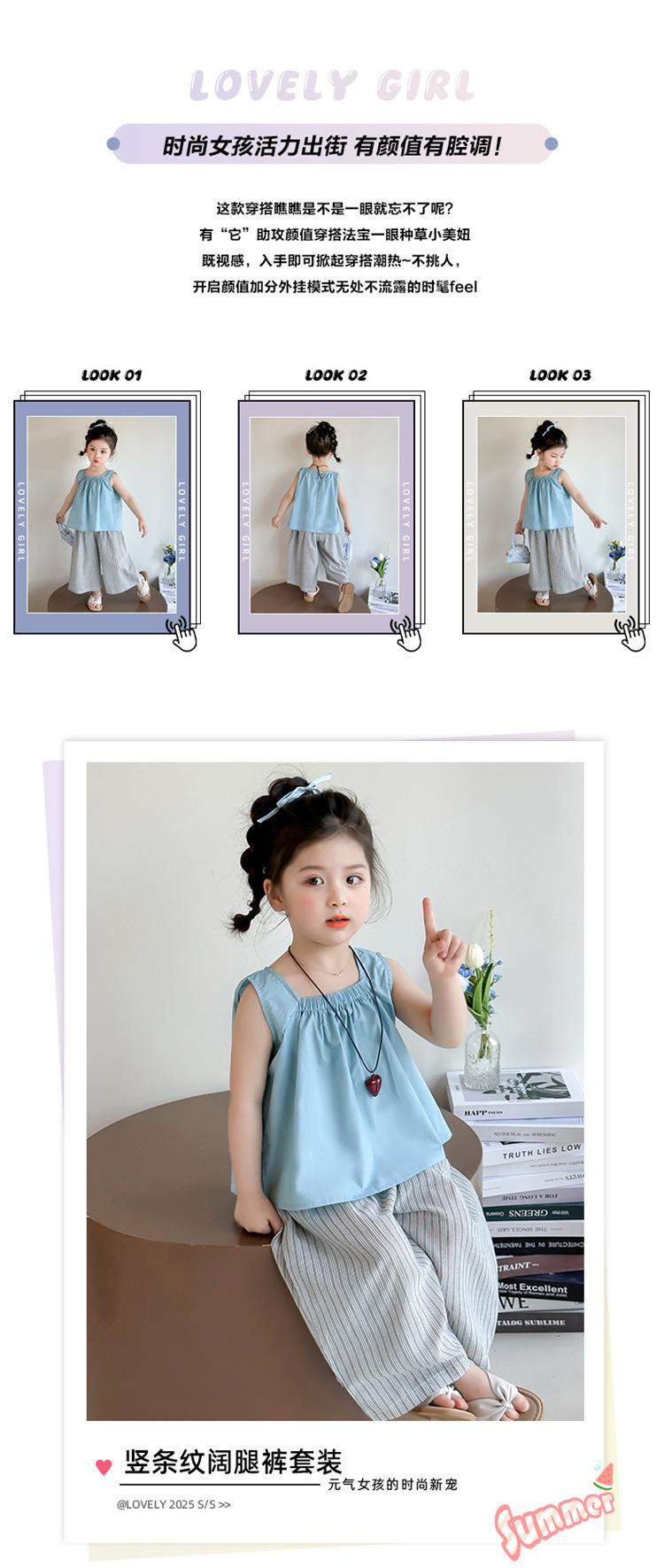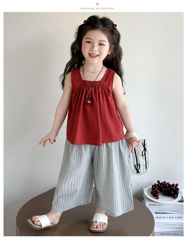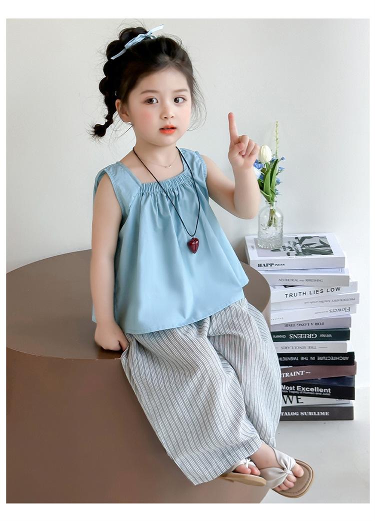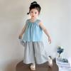Traje de Verano para Niñas 2025 Nuevo Estilo Niña Estilo Coreano Top sin Mangas Vestido de Verano para Bebé Rayas Pantalones de Pierna Ancha Moderno