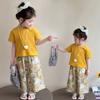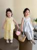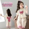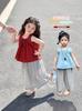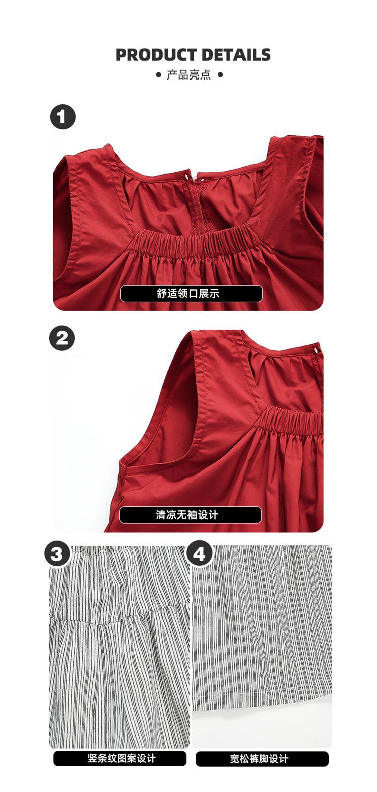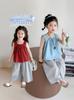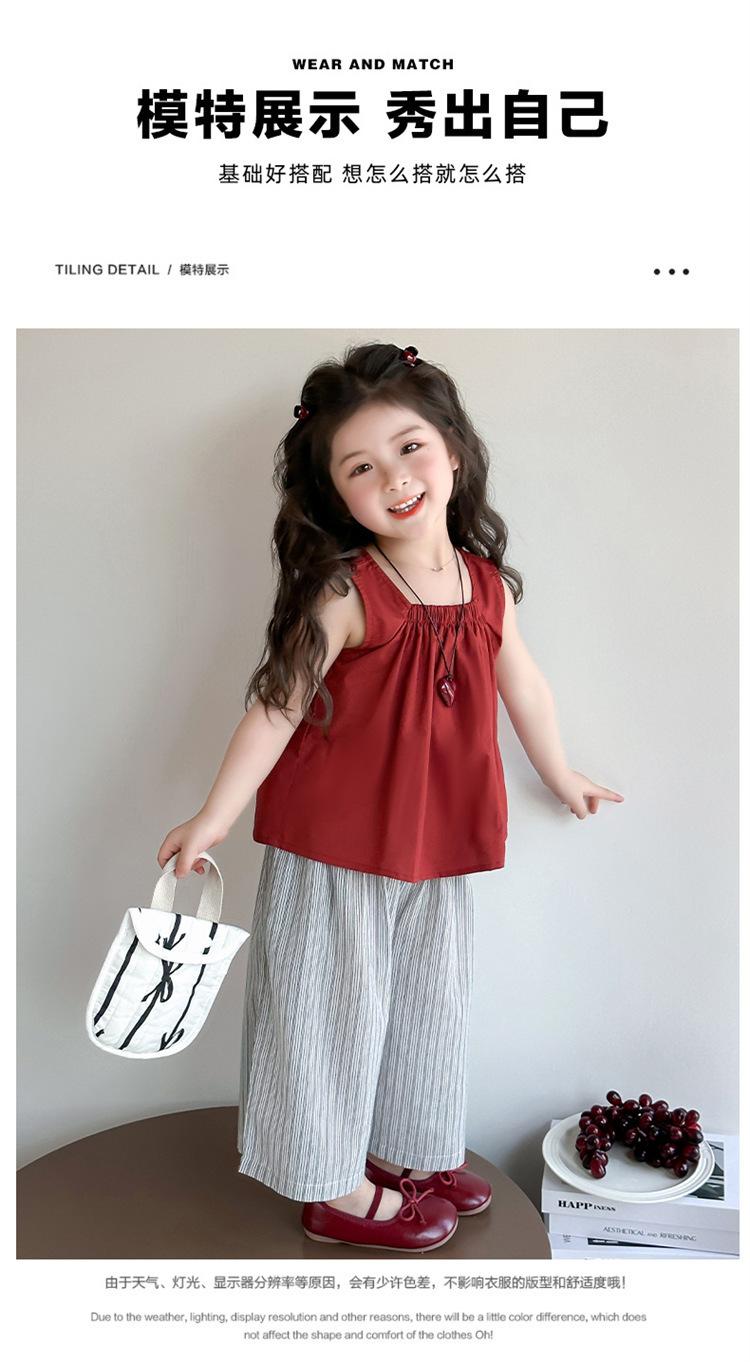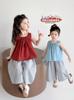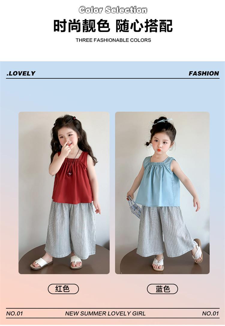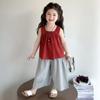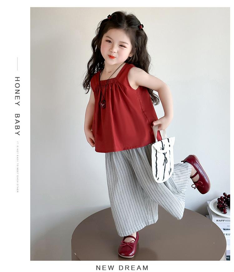 Traje de Verano para Niñas 2025 Nuevo Estilo Niña Estilo Coreano Top sin Mangas Vestido de Verano para Bebé Rayas Pantalones de Pierna Ancha Moderno