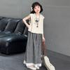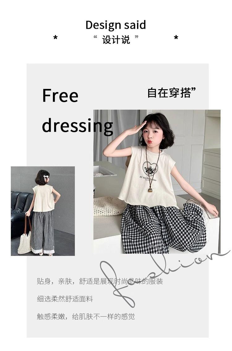 Compra Traje de Verano para Niñas 2025 Nuevo Estilo Camiseta Casual sin Mangas para Niñas Mediana y Grande Encaje para Niños Suelto Pantalón a Cuadros Falda al por mayor en Joom.pro