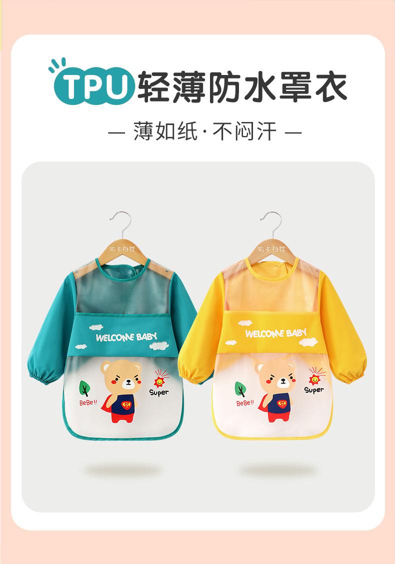 Bata delgada impermeable para pintar para niños de primavera y otoño Tpu translúcida que no necesita lavado Jardín de infancia Bebé Delantal Vestido inverso