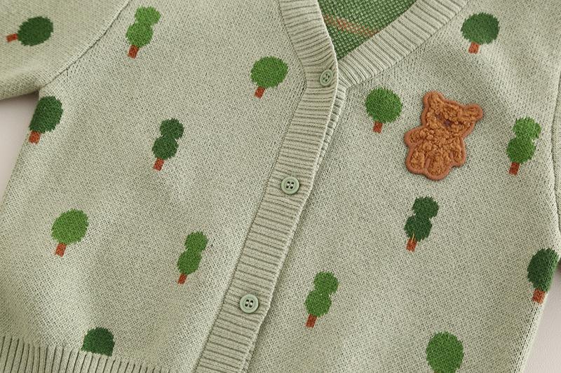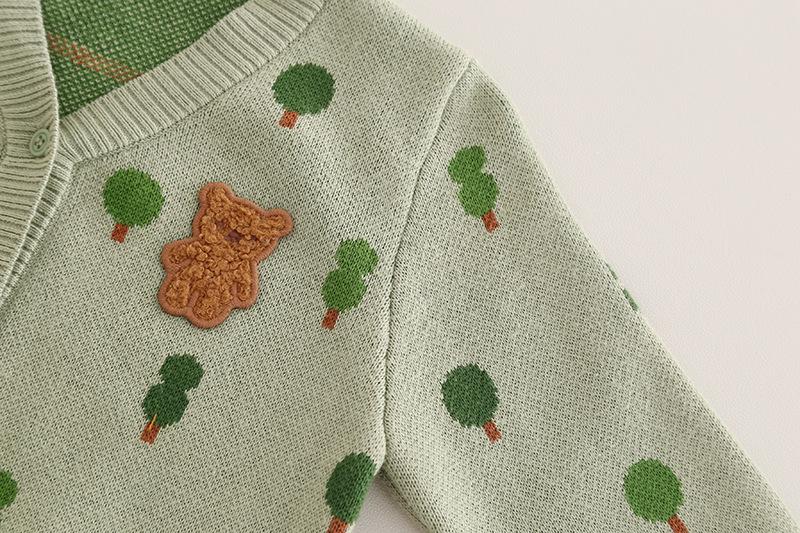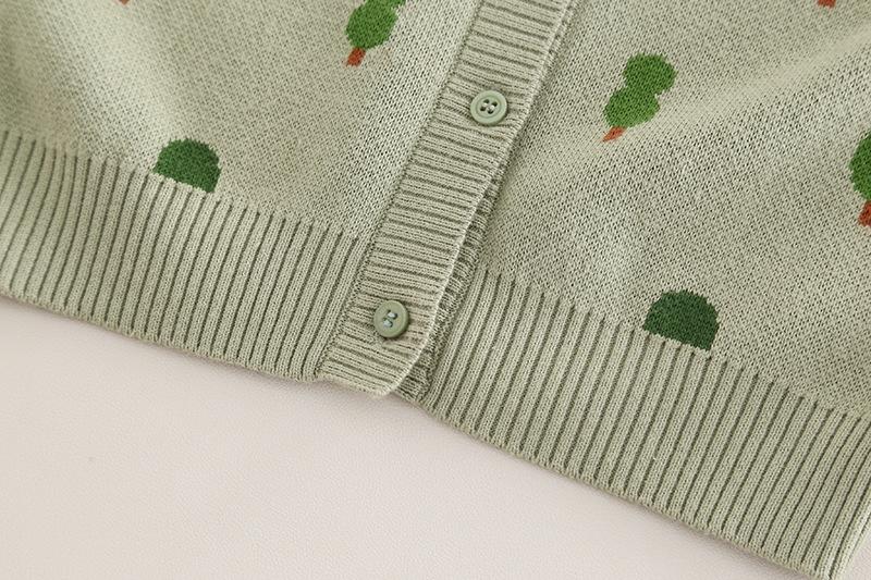 Green 8364 full body tree sweater cardigan three-piece set, Off-white 8364 three-piece tree sweater cardigan set