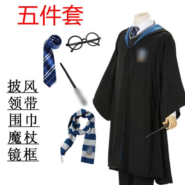 (eight-piece set) blue single robe + tie + scarf + mirror frame + magic wand + wizard hat + shirt + sweater