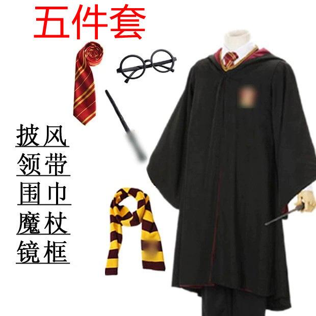 (seven-piece set) red robe + tie + scarf + frame + magic wand + wizard hat + shirt