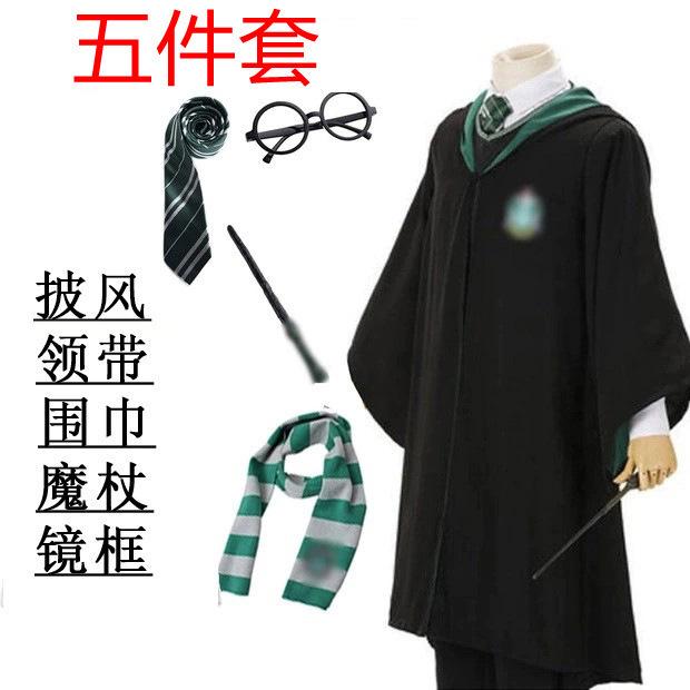 (seven-piece set) green robe + tie + scarf + mirror frame + magic wand + wizard hat + shirt