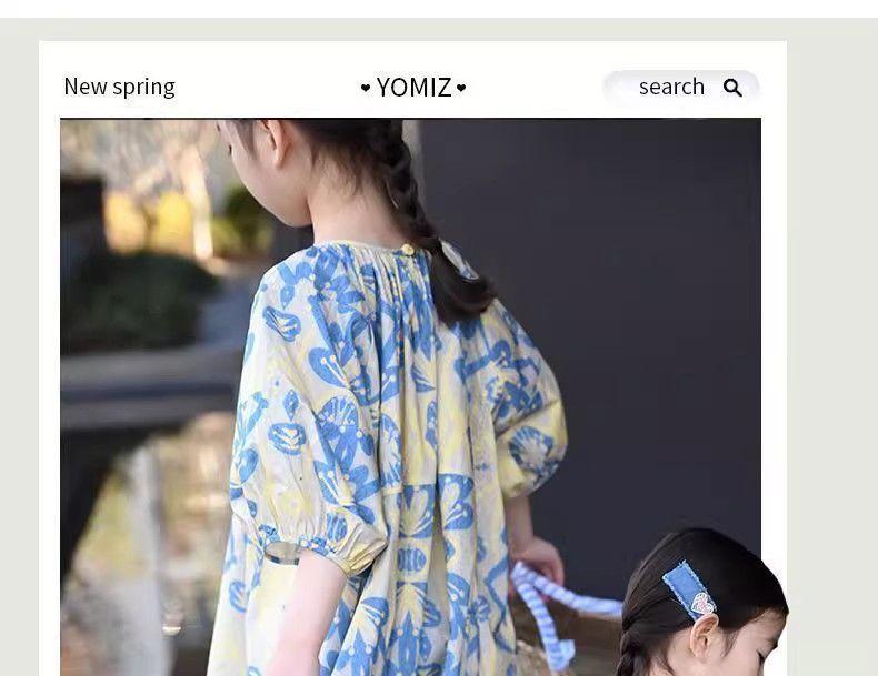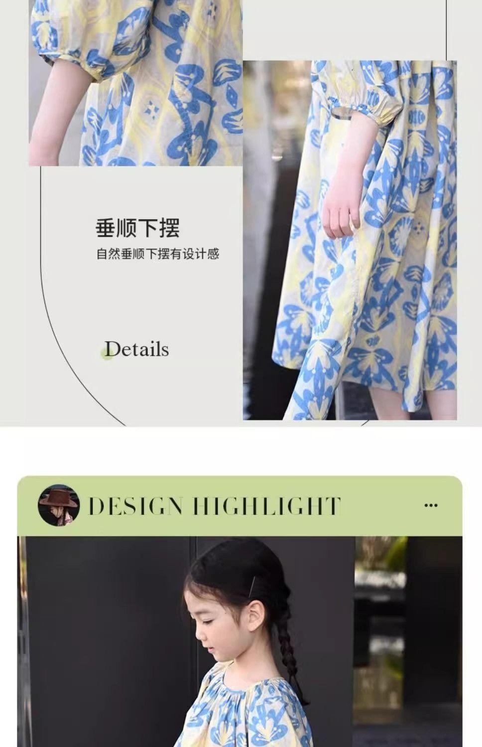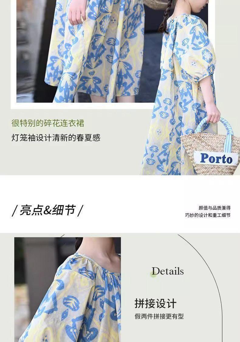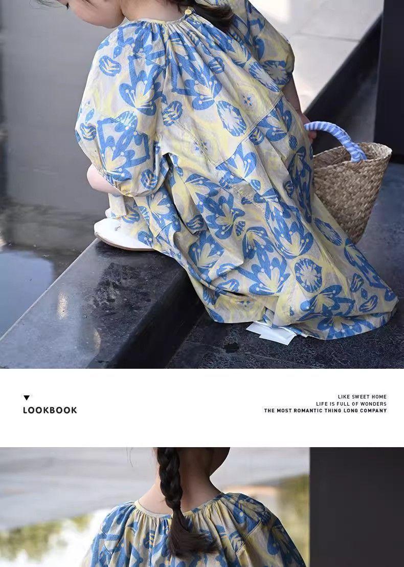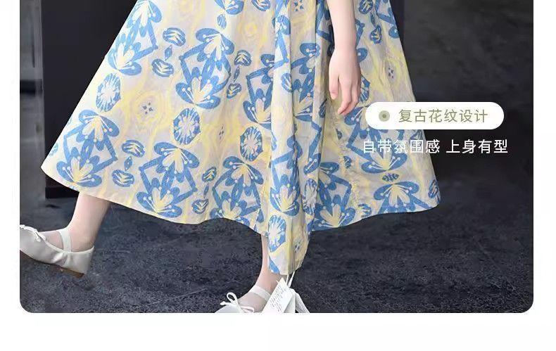 Vestido de Niña Floral Nuevo Estilo de Moda Falda para Niños Vestido de Verano Vestido de Princesa para Niña Manga Abullonada Flor Vestido Largo
