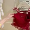 Red suit, Cherry sling, Red plaid bud pants