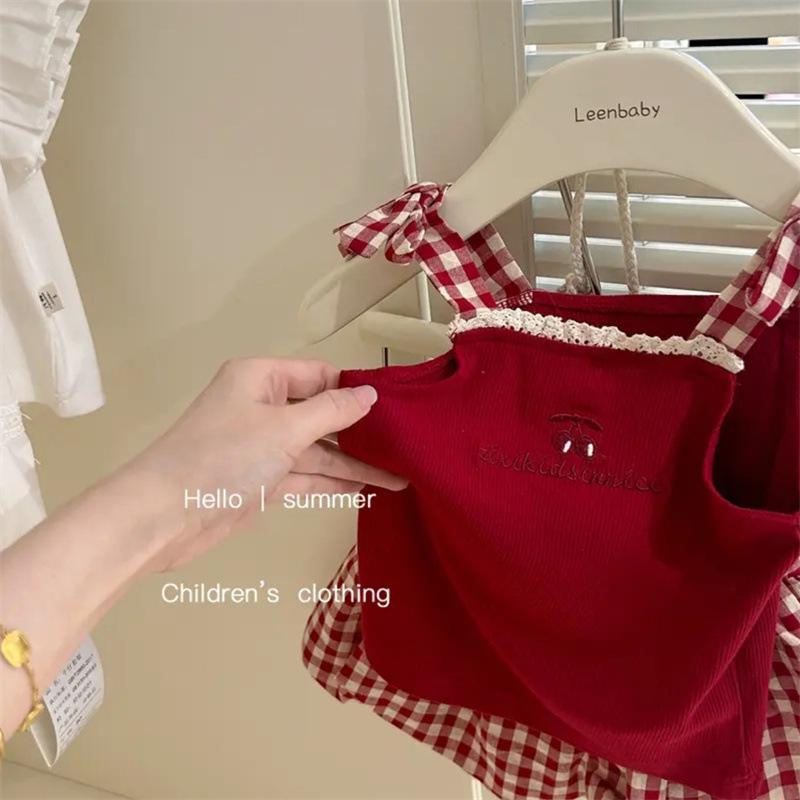 Ropa Infantil Sling Niñas 2025 Nuevo Verano Moda Coreana Chaleco Versátil Shorts Dulce Bebé Conjunto de Dos Piezas Trendy