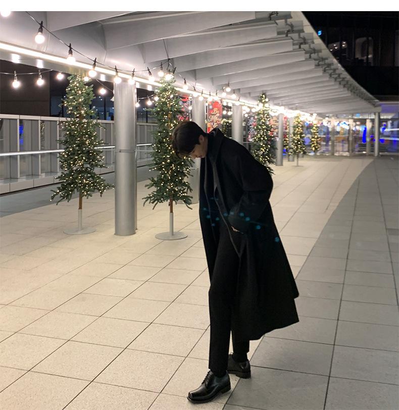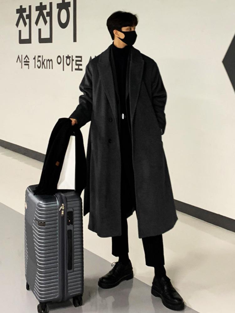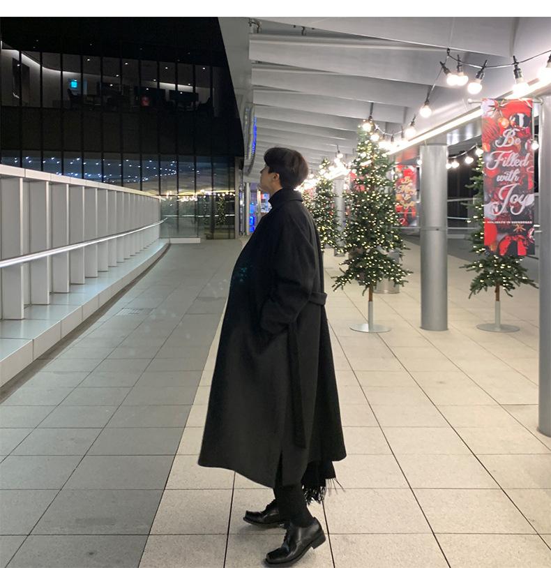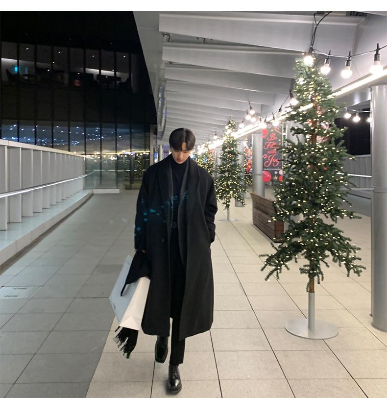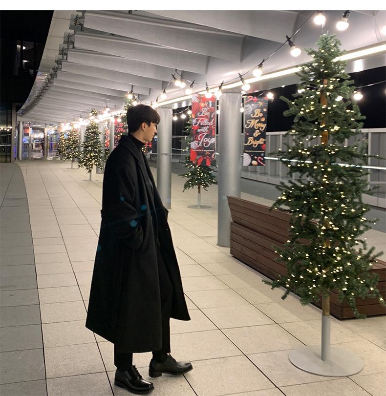 Abrigo de lana de Otoño e Invierno para hombre, largo hasta la rodilla, estilo británico de invierno, estilo coreano suelto, gabardina de lana para hombre