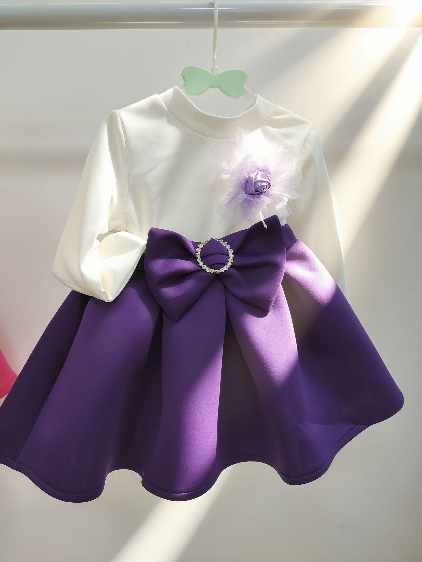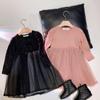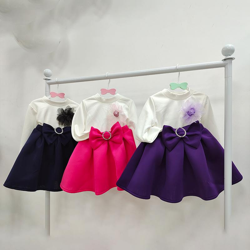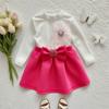 Comercio Exterior Transfronterizo Europeo y Americano Primavera y Otoño Nuevo Estilo Multicolor Lindo Set para Niñas Decoración de Flores Manga Larga Color Sólido + Falda Abullonada