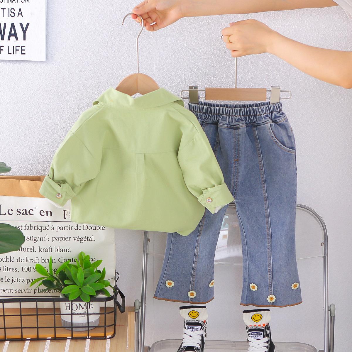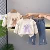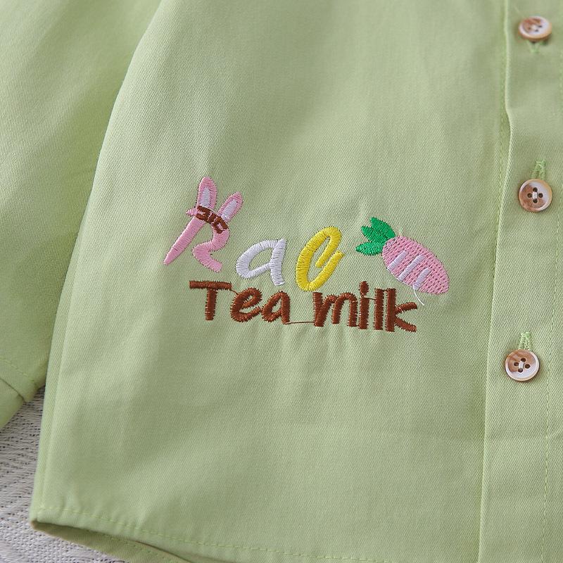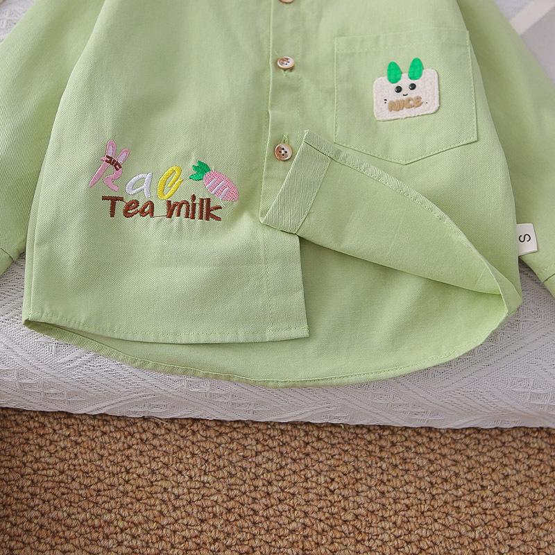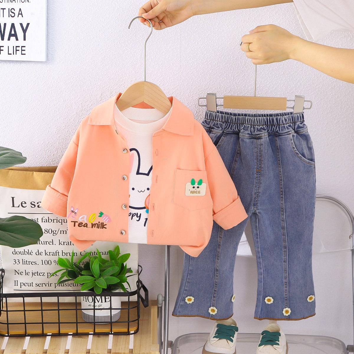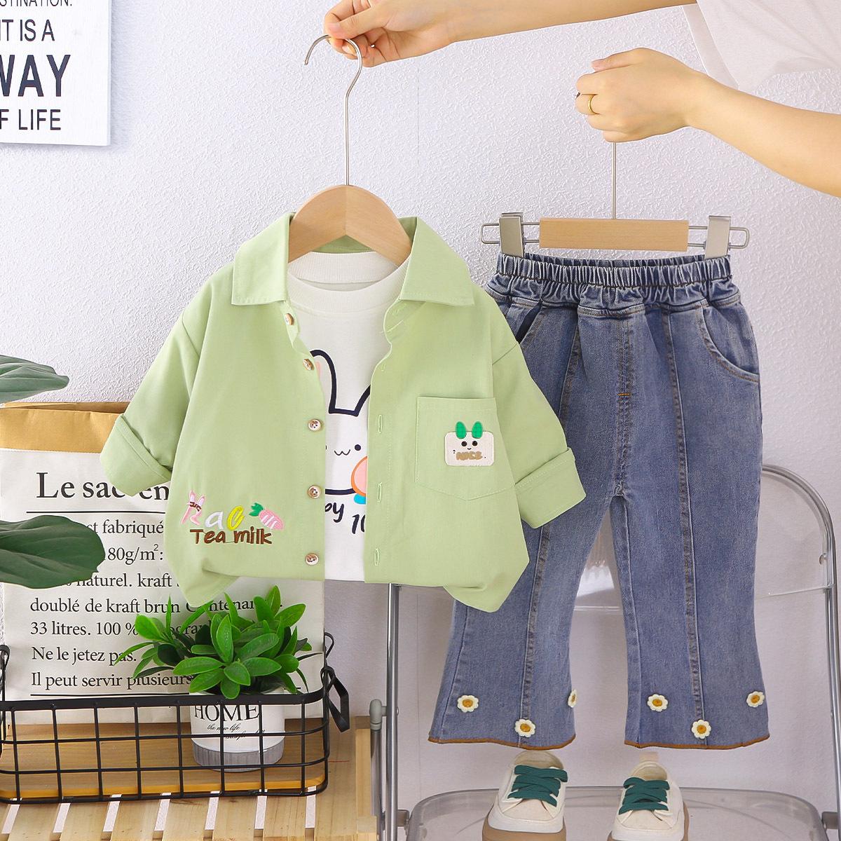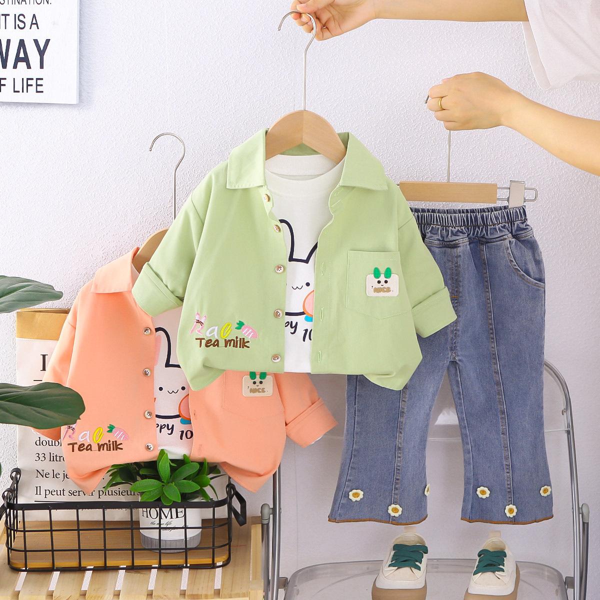 Camisas para Niñas Primavera y Otoño Nuevo Estilo Moda para Bebés Niñas Niños Bordado Lindo Dibujo Animado Macaron Bebé Conjunto de Tres Piezas