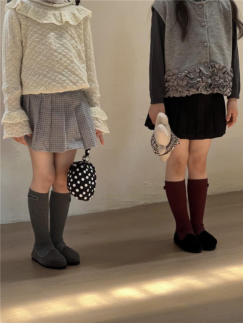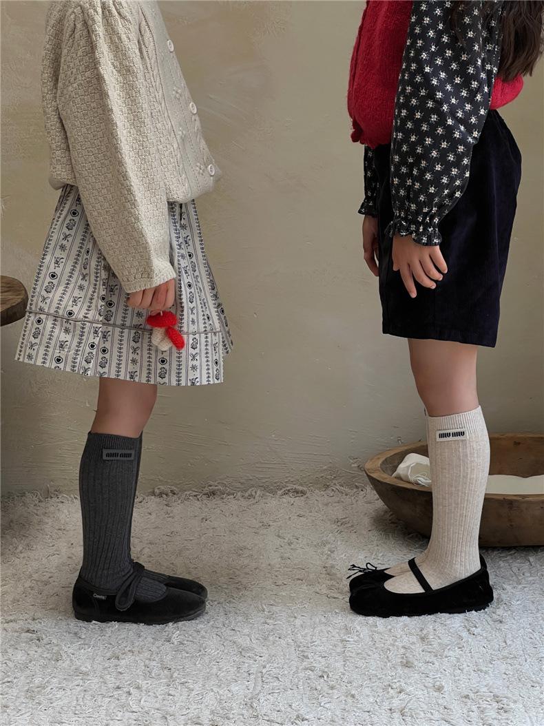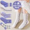WB1268 Otoño Nuevos Calcetines para Niños Venta al por Mayor Calcetines de Media Caña de Color Sólido para Bebé Etiqueta MIU Calcetines Rectos de Encaje Venta al por Mayor