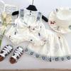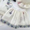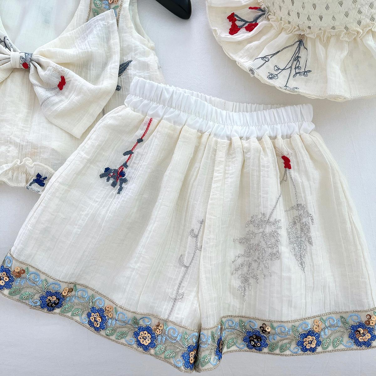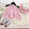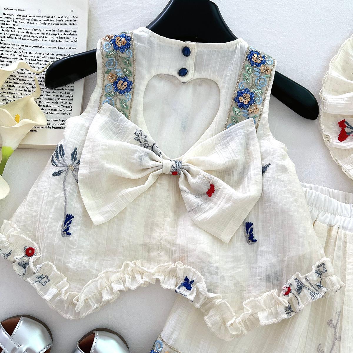 Conjunto de Top sin Mangas para Niña Estilo Verano Delgado 2025 Nuevo Bebé Moda Calado Lazo Shorts Conjunto de Dos Piezas