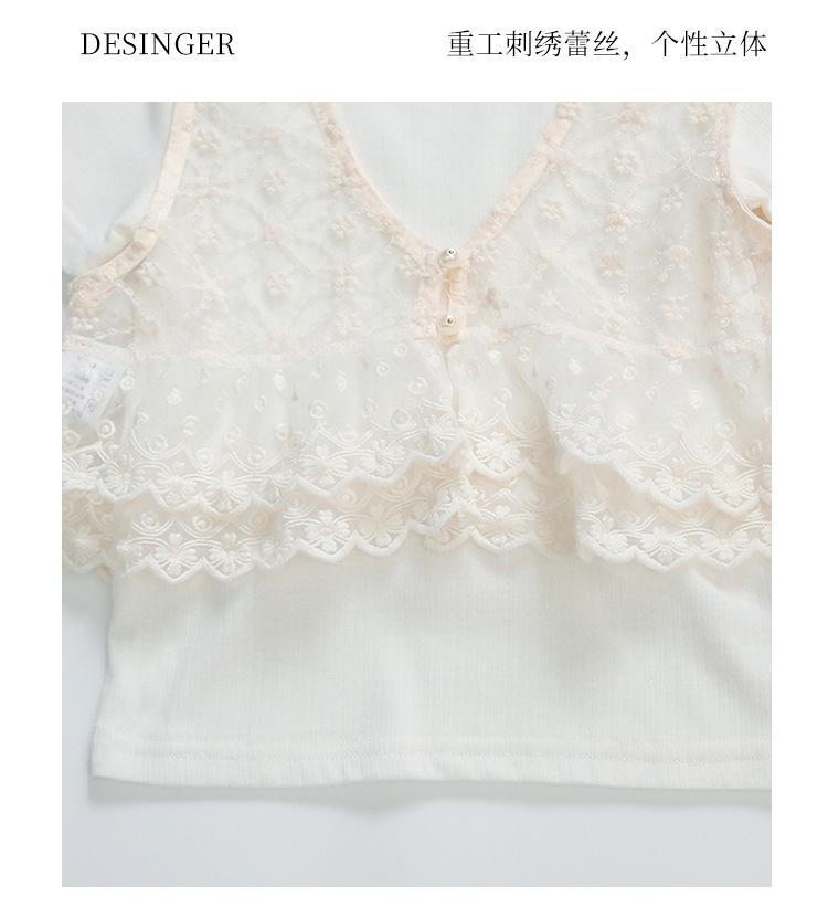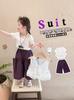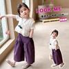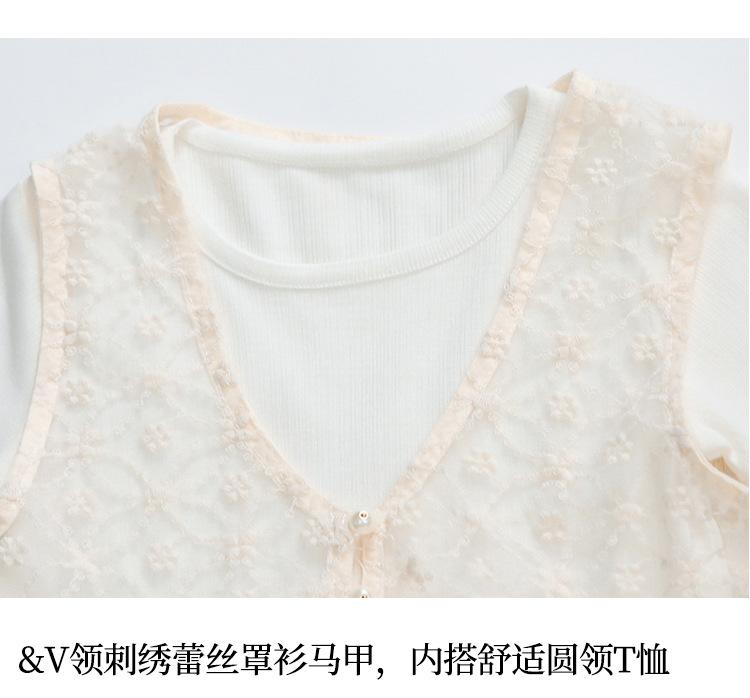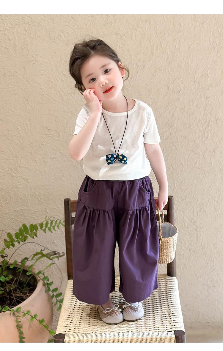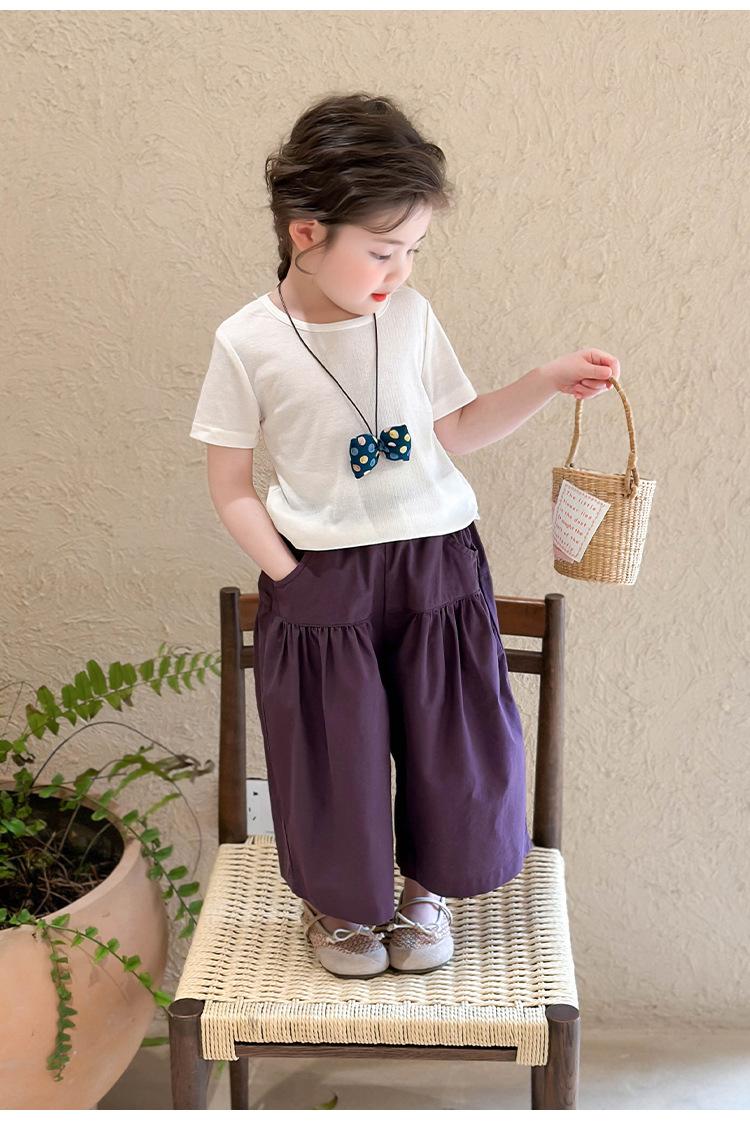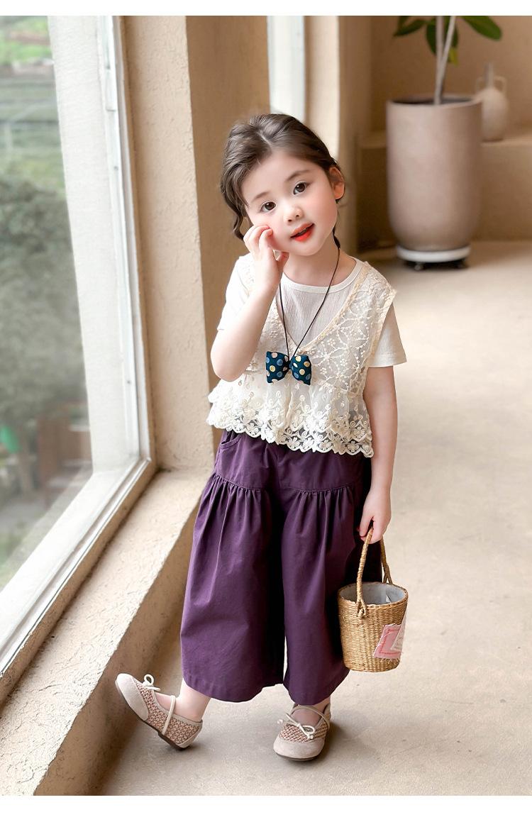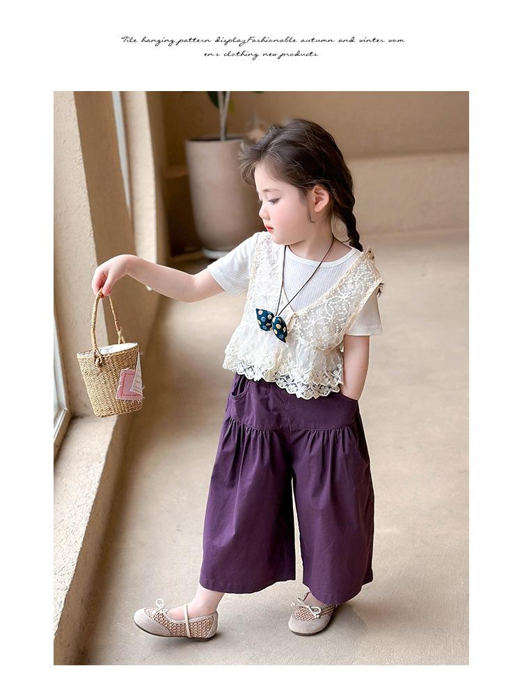 Traje de Verano de Manga Corta para Niñas 2025 Nuevo Conjunto de Tres Piezas para Bebé Infantil Dulce y Elegante con Chaleco de Encaje y Pantalones de Pierna Ancha
