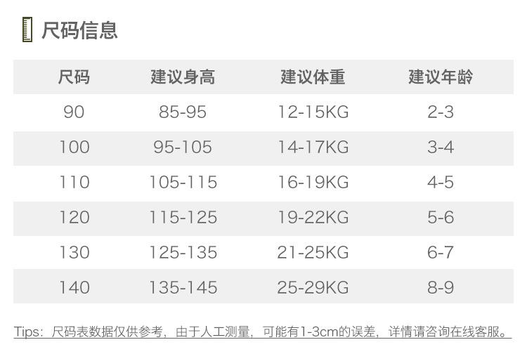 Children (3~8 years old, 100~140cm)