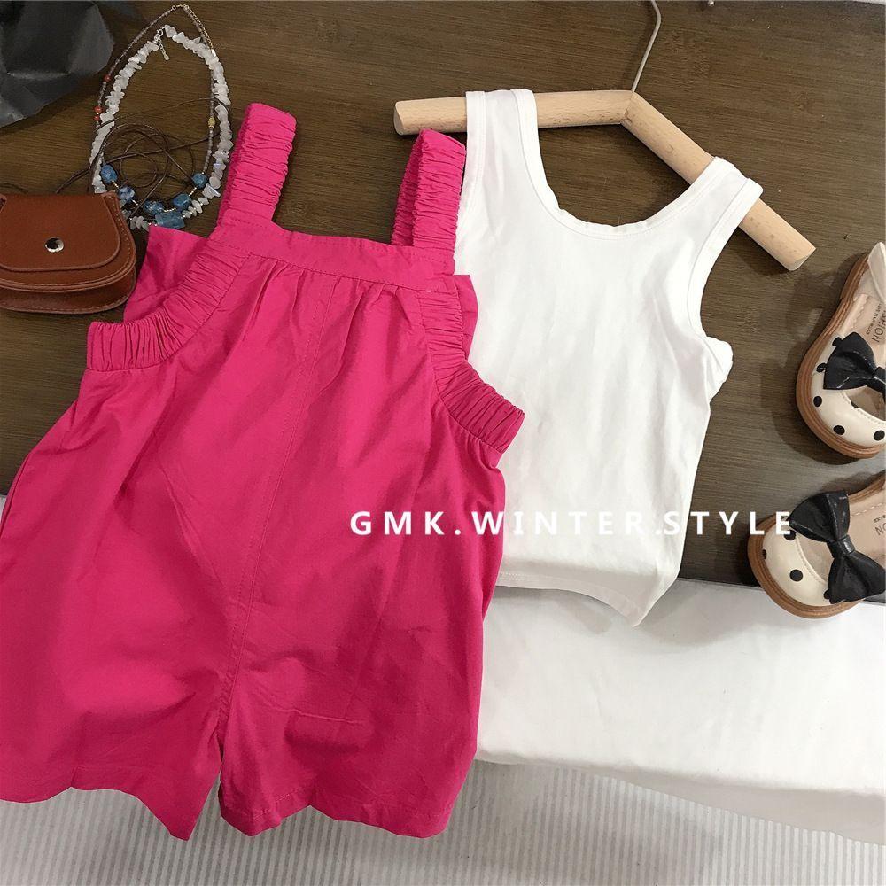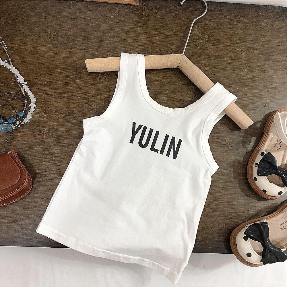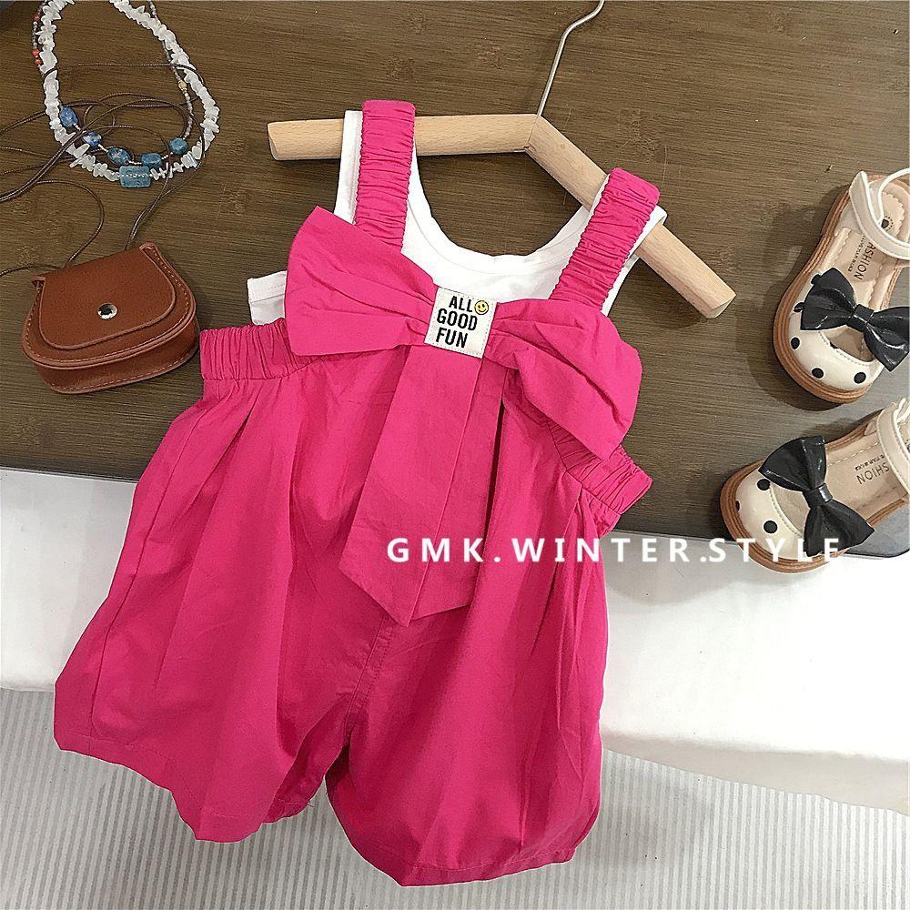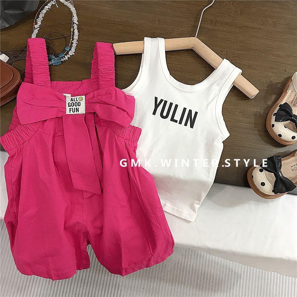 Conjunto de Verano para Niñas de Dos Piezas Moda para Bebés Niños Marca Individual de Tendencia Estilo Coreano Chaleco con Letras Peto con Lazo