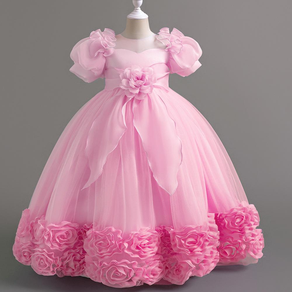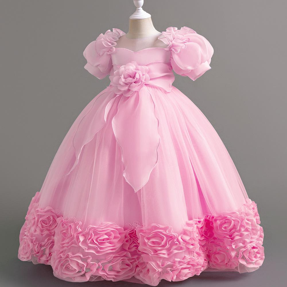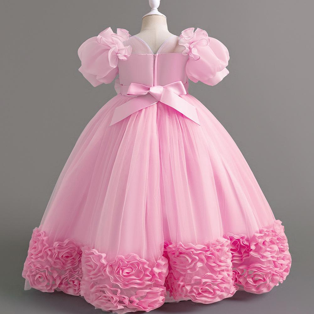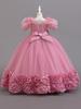 Vestido de niña manga linterna flor grande flor flor capullo de flor hilo abullonado fiesta de cumpleaños de bebé anfitrión actuación vestido de princesa