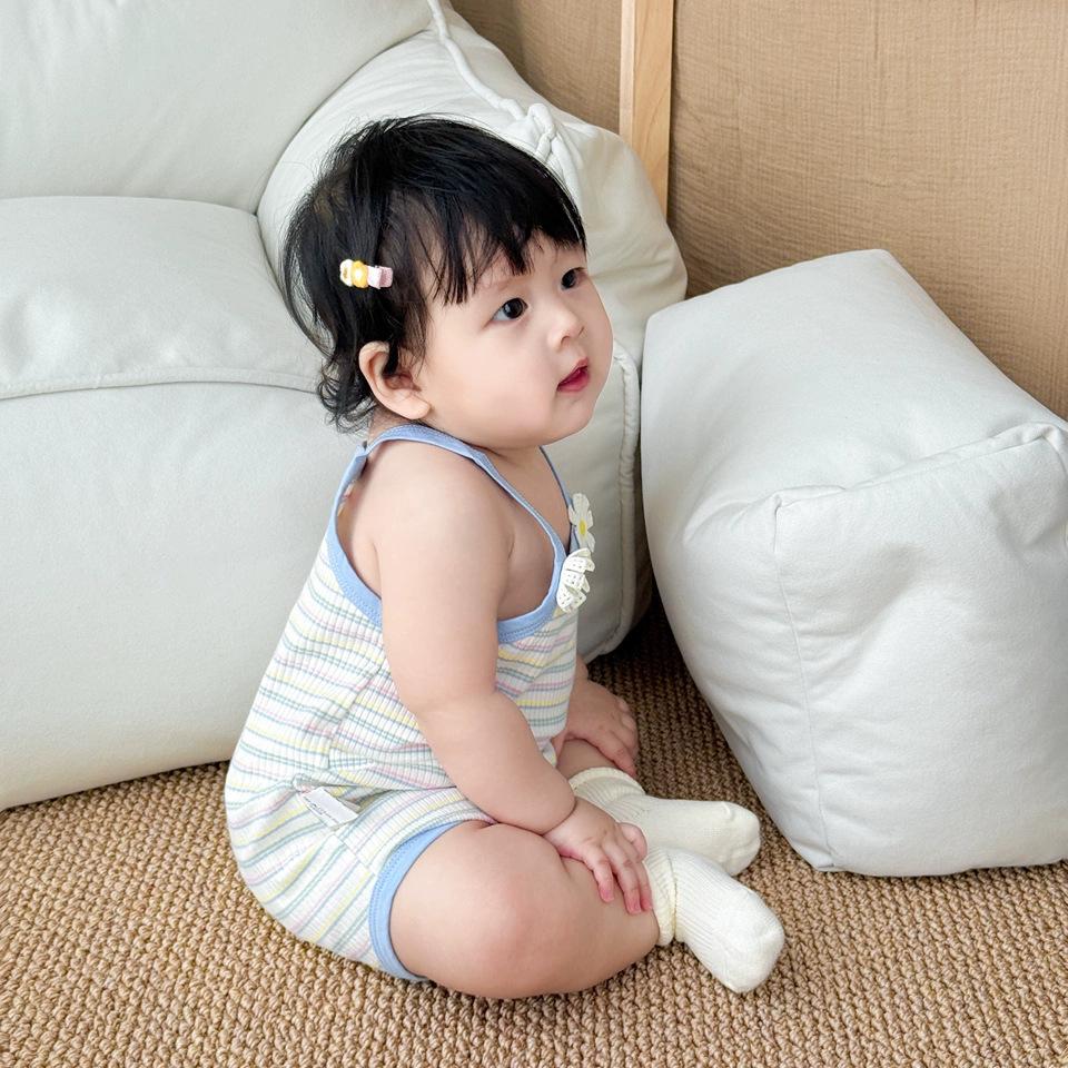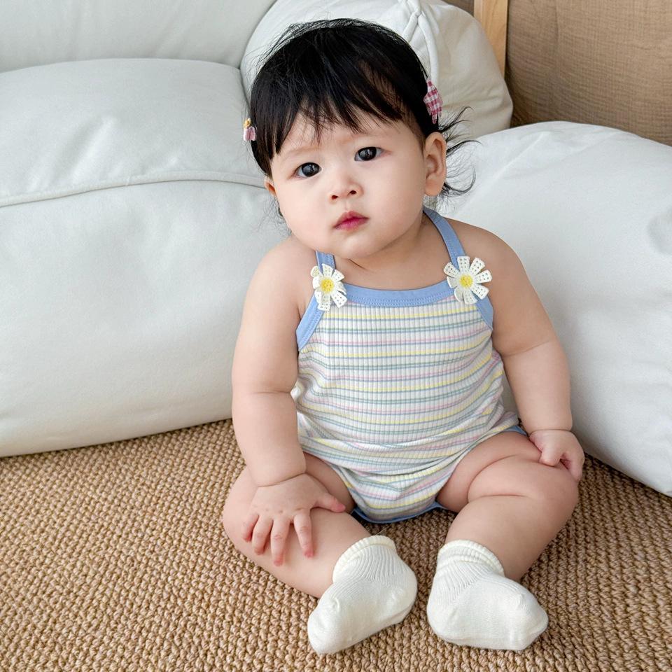 Ropa Delgada de Verano para Bebé Niña Infantil Pelele para Salir Rayas Azules Tirantes Bolsa de Verano Ropa de Pedos