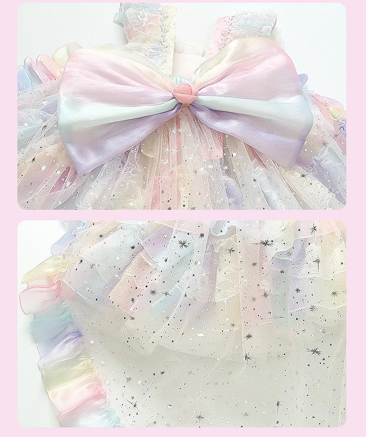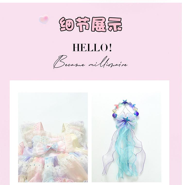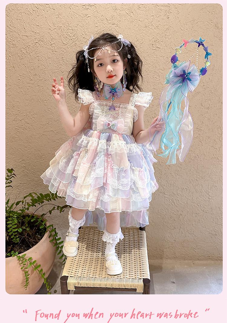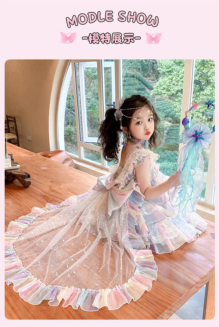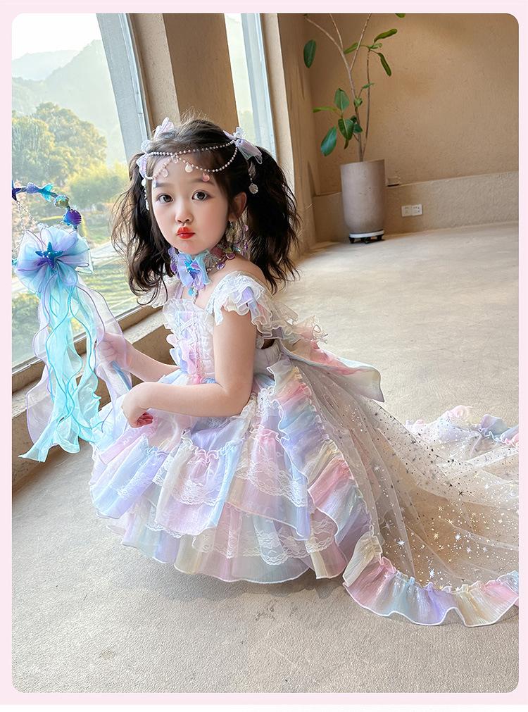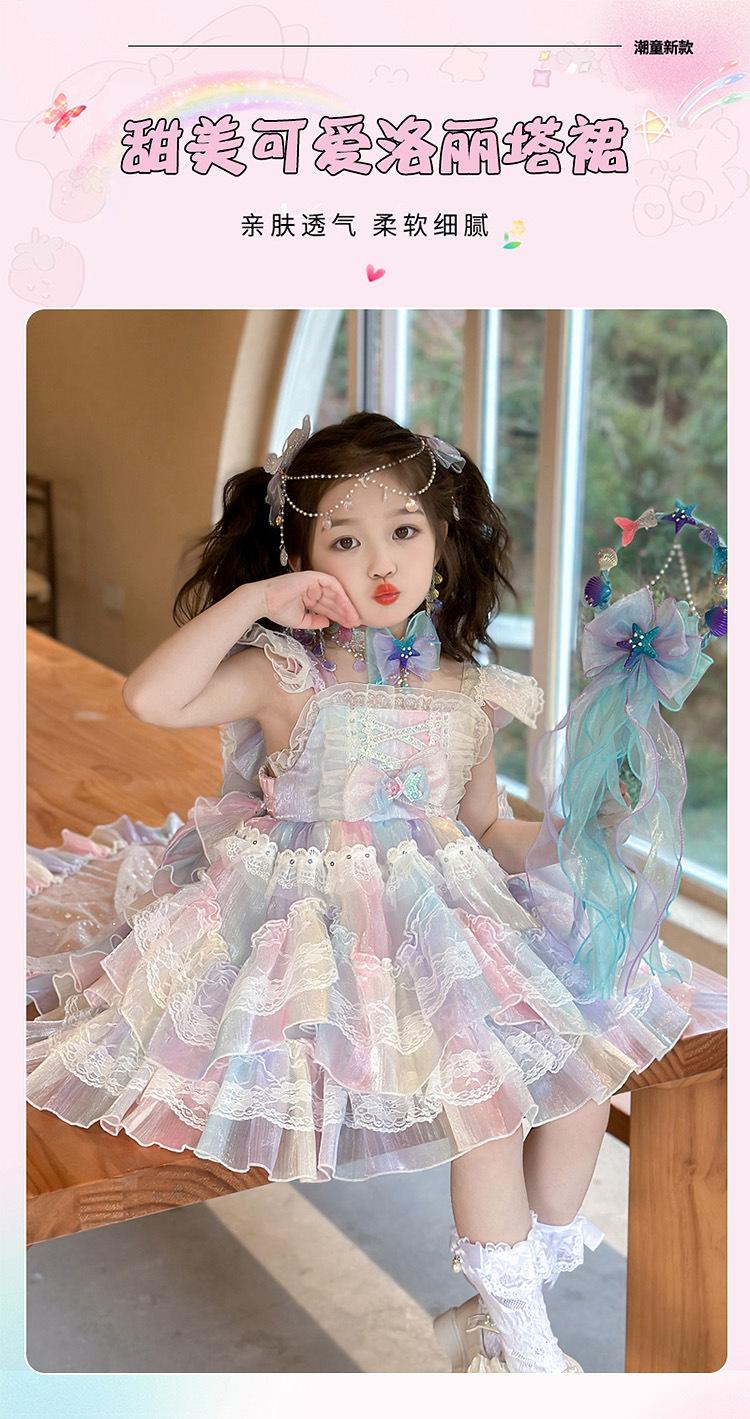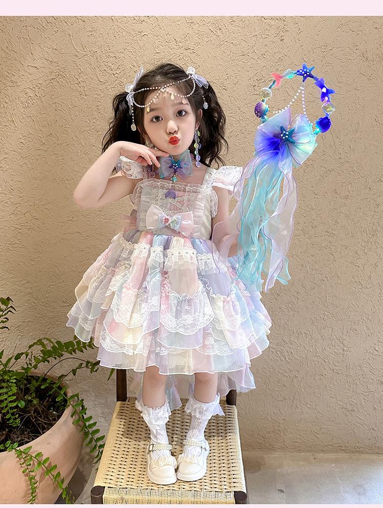 Vestido de Princesa Lolita Sirena para Niñas Verano Nuevo Vestido Infantil Vestido de Tirantes con Tul para Bebé
