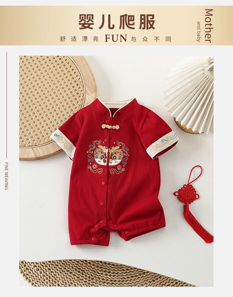 Verano Nuevo Pelele para Bebé Estilo Chino Estilo Nacional Traje para Gatear Bebé Cien Días Primer Cumpleaños Ceremonia de Agarre Vestido Mameluco para Niños