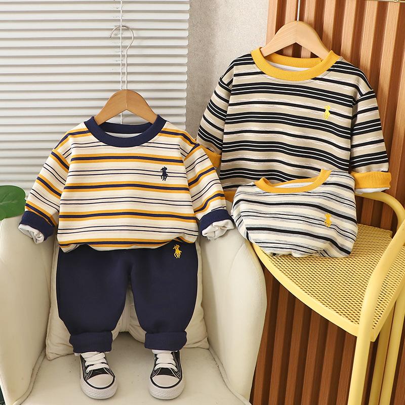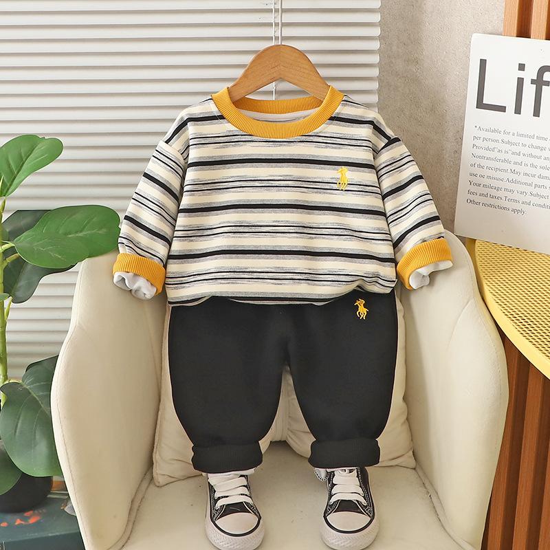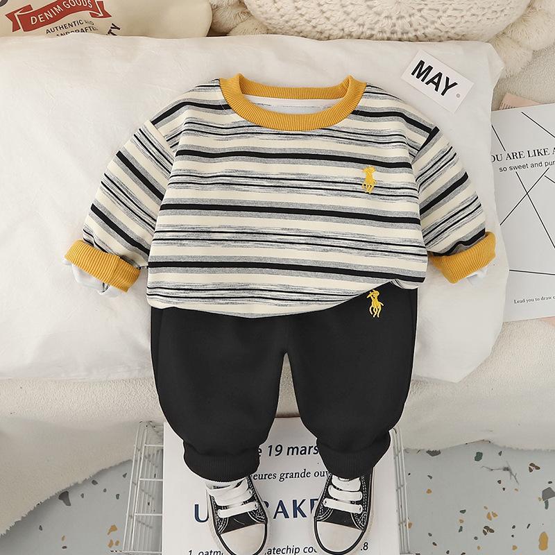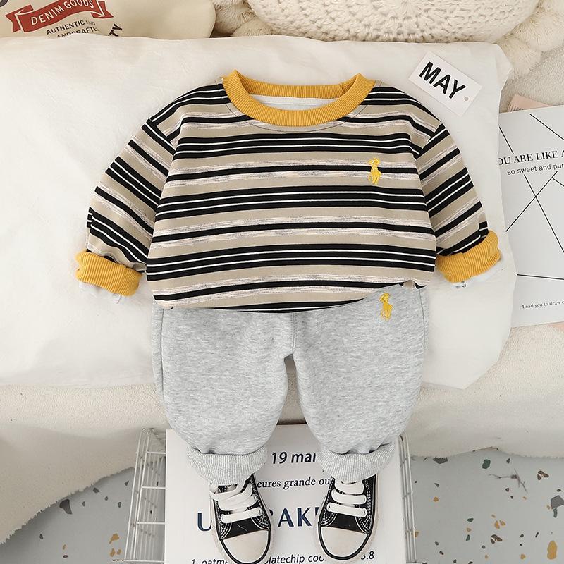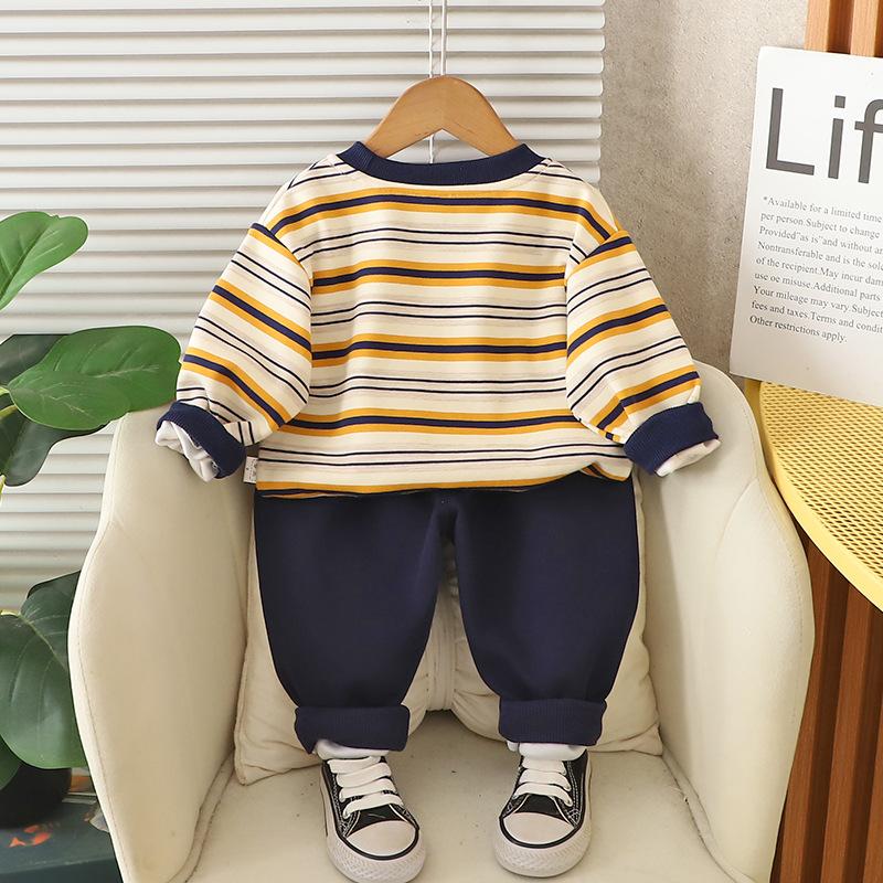 Conjunto de Sudadera Rayada de Moda para Niño 2025 Primavera y Otoño Nuevo Estilo Ropa de Niño Guapo Conjunto Casual de Dos Piezas para Bebé