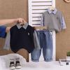 Ropa para Niños 2025 Primavera y Otoño Nuevo Chaleco de Suéter de Niño Guapo Conjunto de Tres Piezas Bebé de un Año Moda Otoño