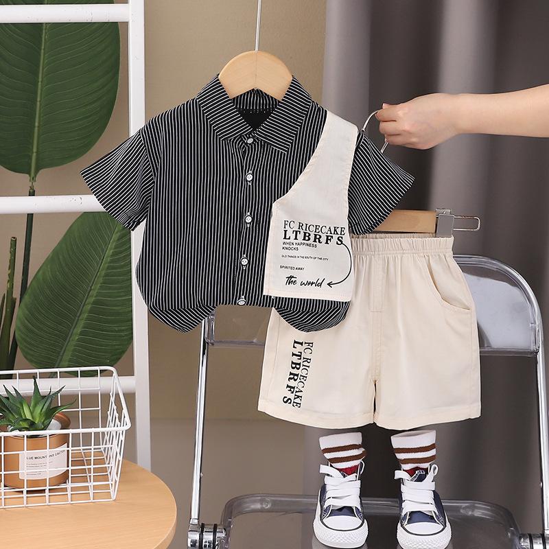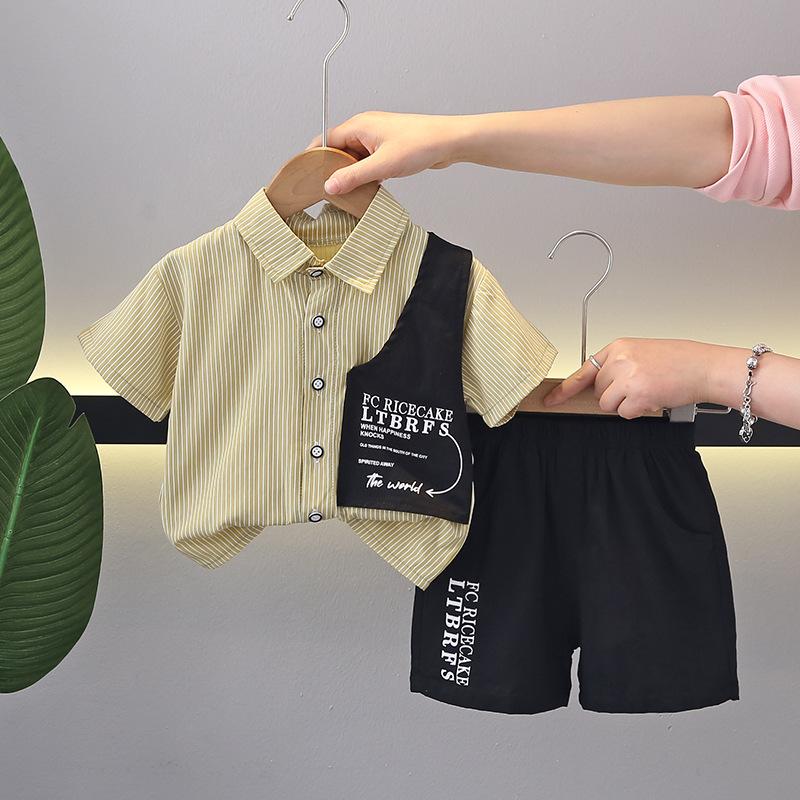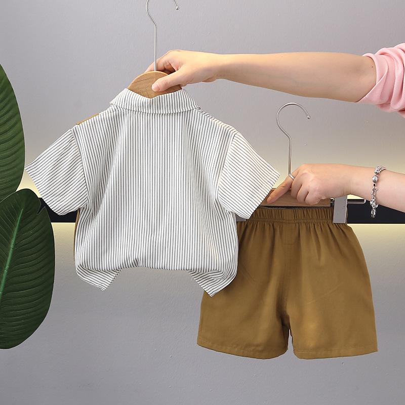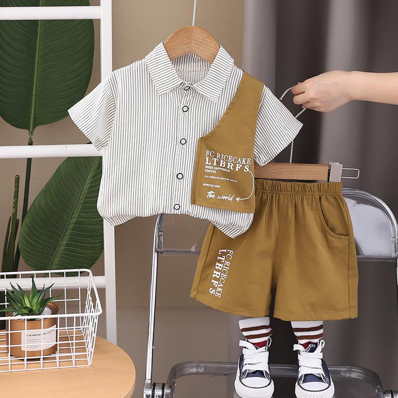 Ropa de Niños Traje de Verano Estilo Occidental Nuevo Camisa de Manga Corta de Verano para Niños Conjunto Casual de Dos Piezas Bebé de Moda en Internet