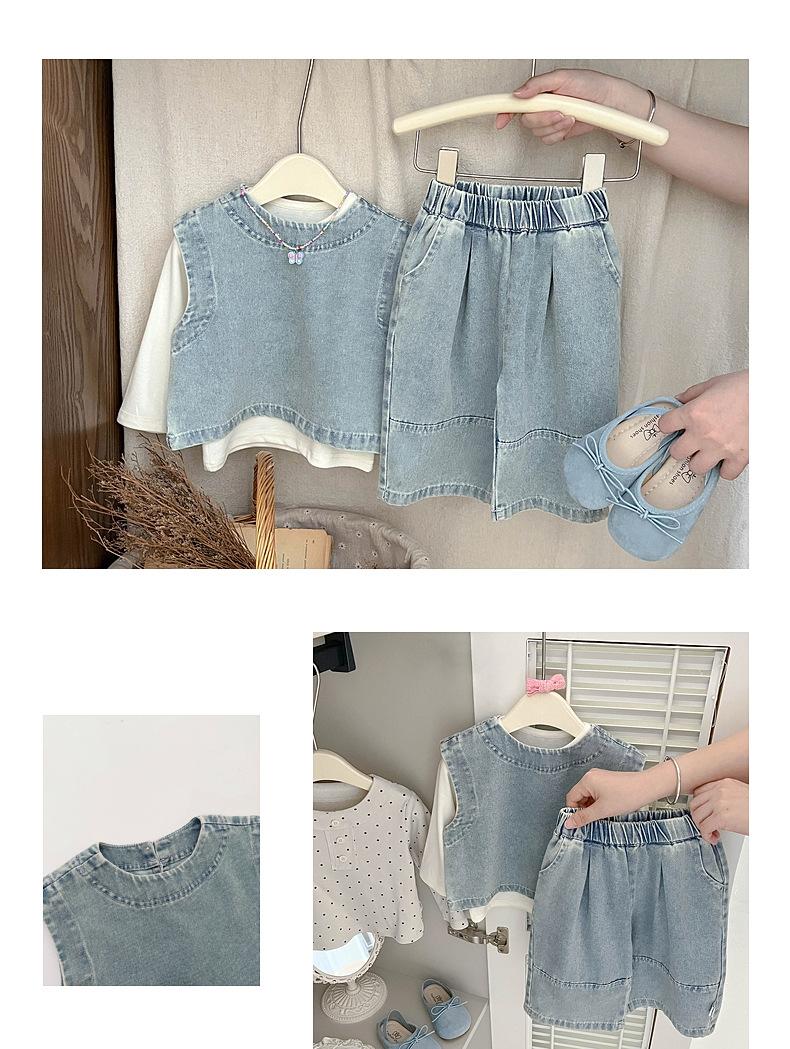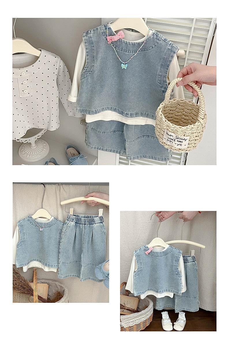 Conjunto de mezclilla a la moda estilo coreano para bebé niña primavera y otoño, top casual sin mangas para niña, pantalones largos versátiles holgados para bebé