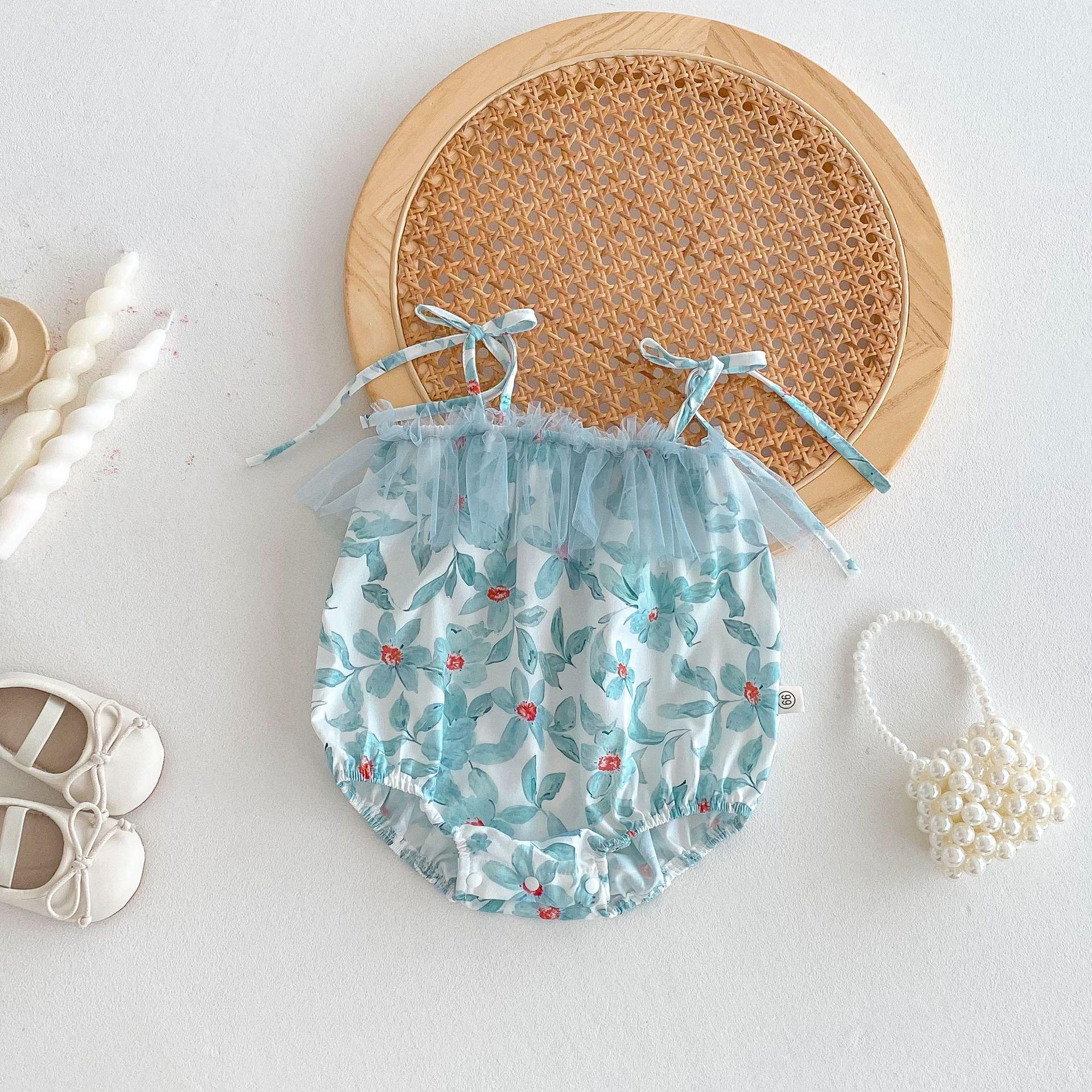 INS 2025 Verano Bebé Estampado Encaje Sling Puerto Bebé Ropa de Escalada para Mujer Cabello Transfronterizo