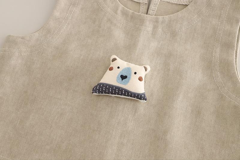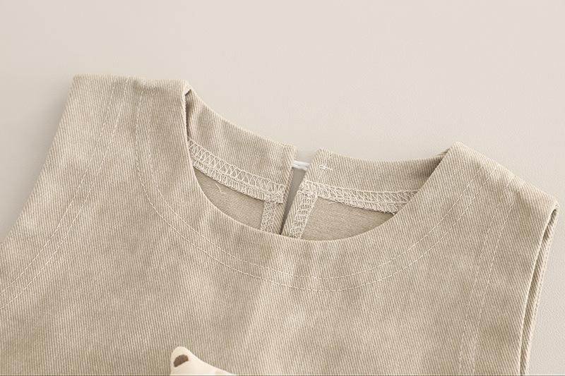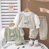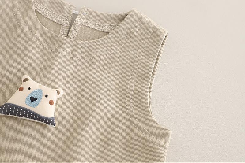 Khaki Teddy Bear Vest Long Sleeve Three-Piece Set