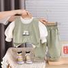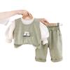 Khaki Teddy Bear Vest Long Sleeve Three-Piece Set, Green Teddy Bear Vest Long Sleeve Three-Piece Set
