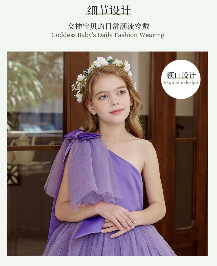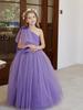 Vestido de un hombro para niña Largo hasta el suelo Lazo Estilo palaciego Vestido de princesa Vestido de graduación para niños Cumpleaños Niña de las flores Boda