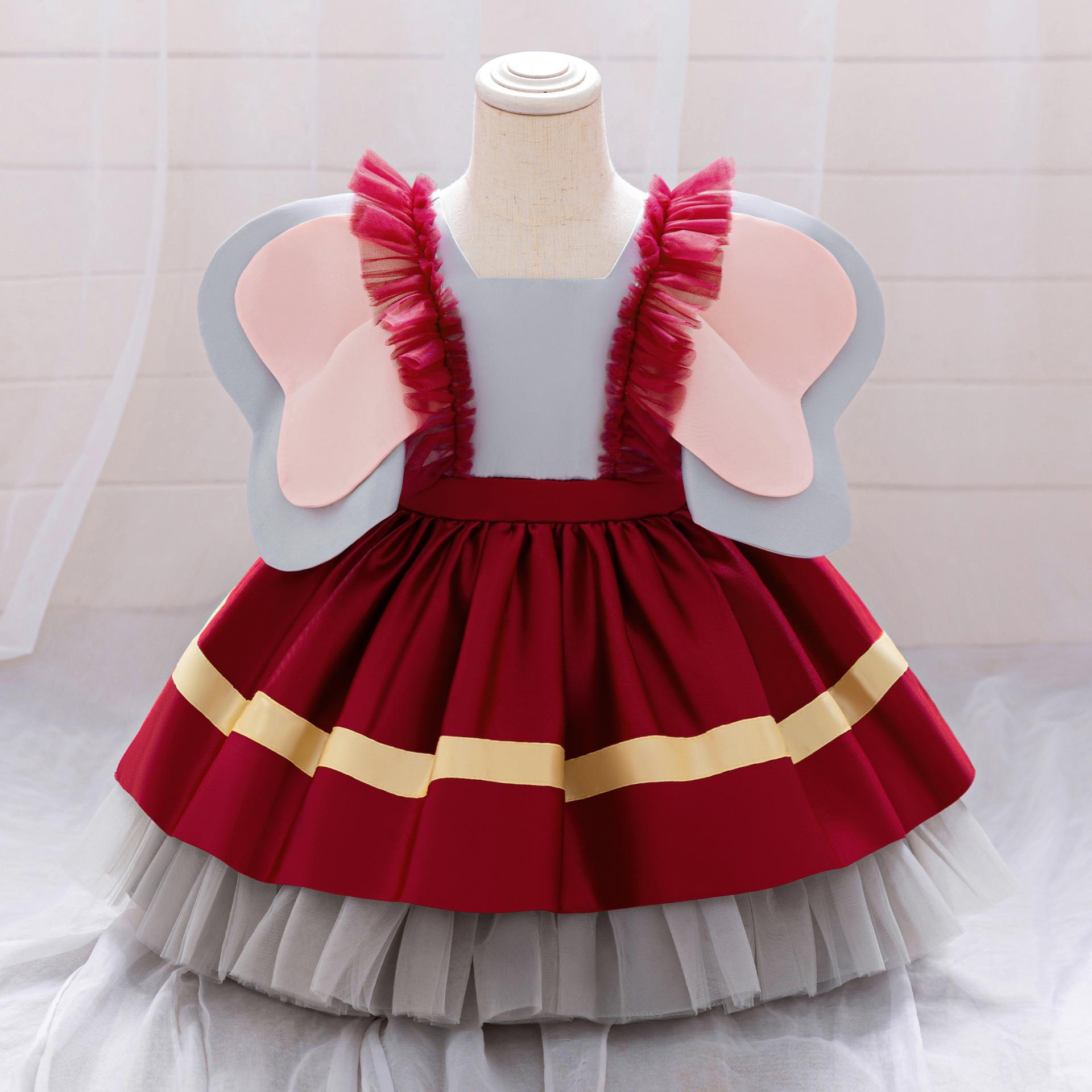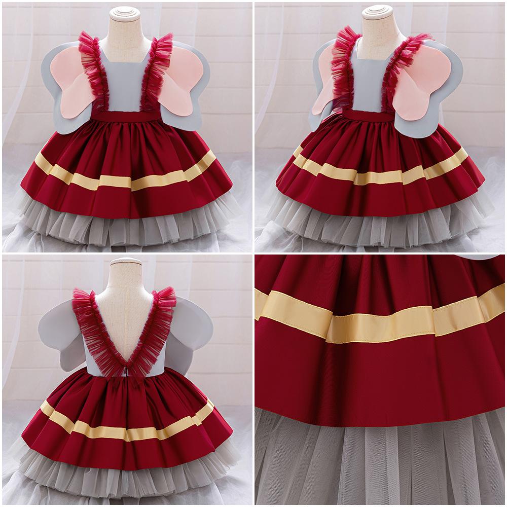 Cosplay Infantil Transfronterizo Vestido Dumbo Cuello en V Malla Abullonado Vestido de Princesa Vestido de Gala para Actuación de Festival