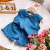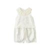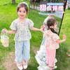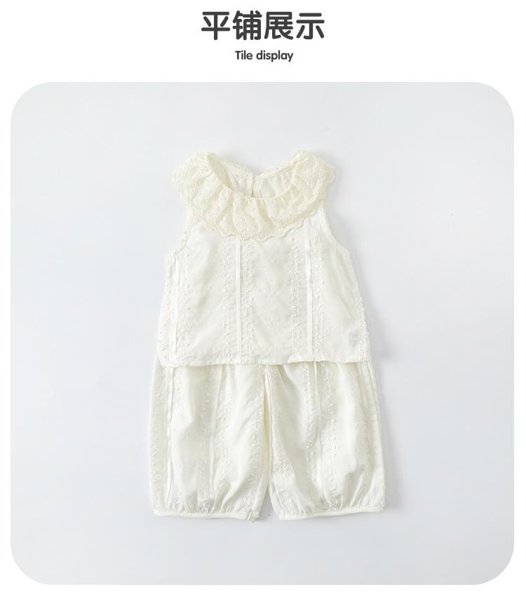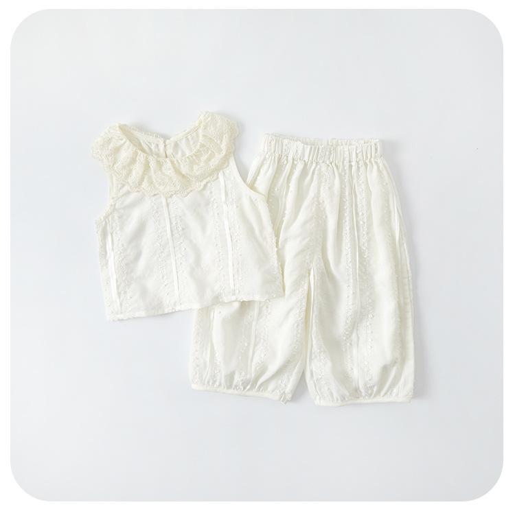 Traje Jacquard Dividido para Niñas 2025 Verano Nuevo Chaleco con Cuello de Muñeca para Bebé Pantalones de Pierna Ancha Conjunto de Dos Piezas Trendy