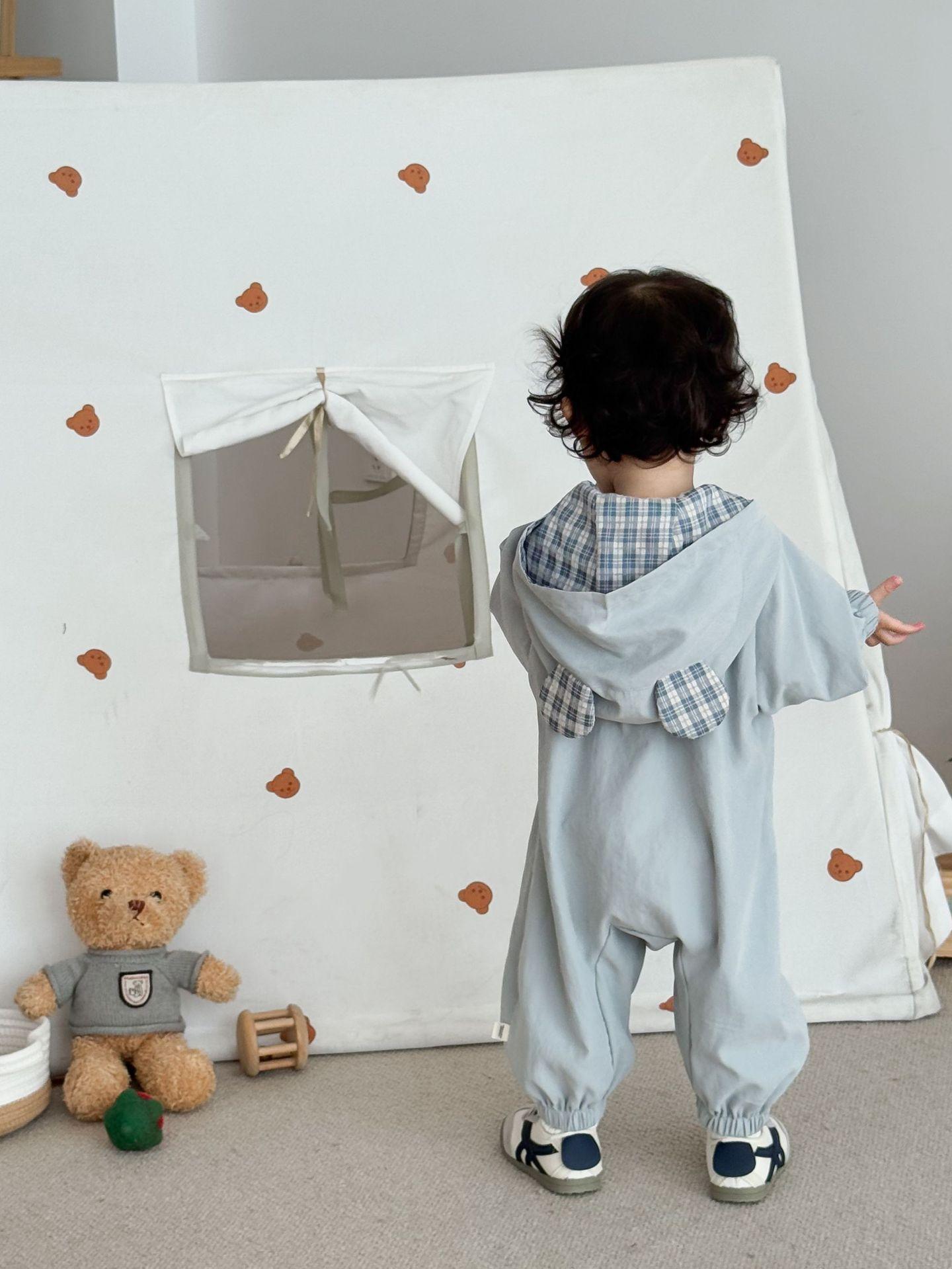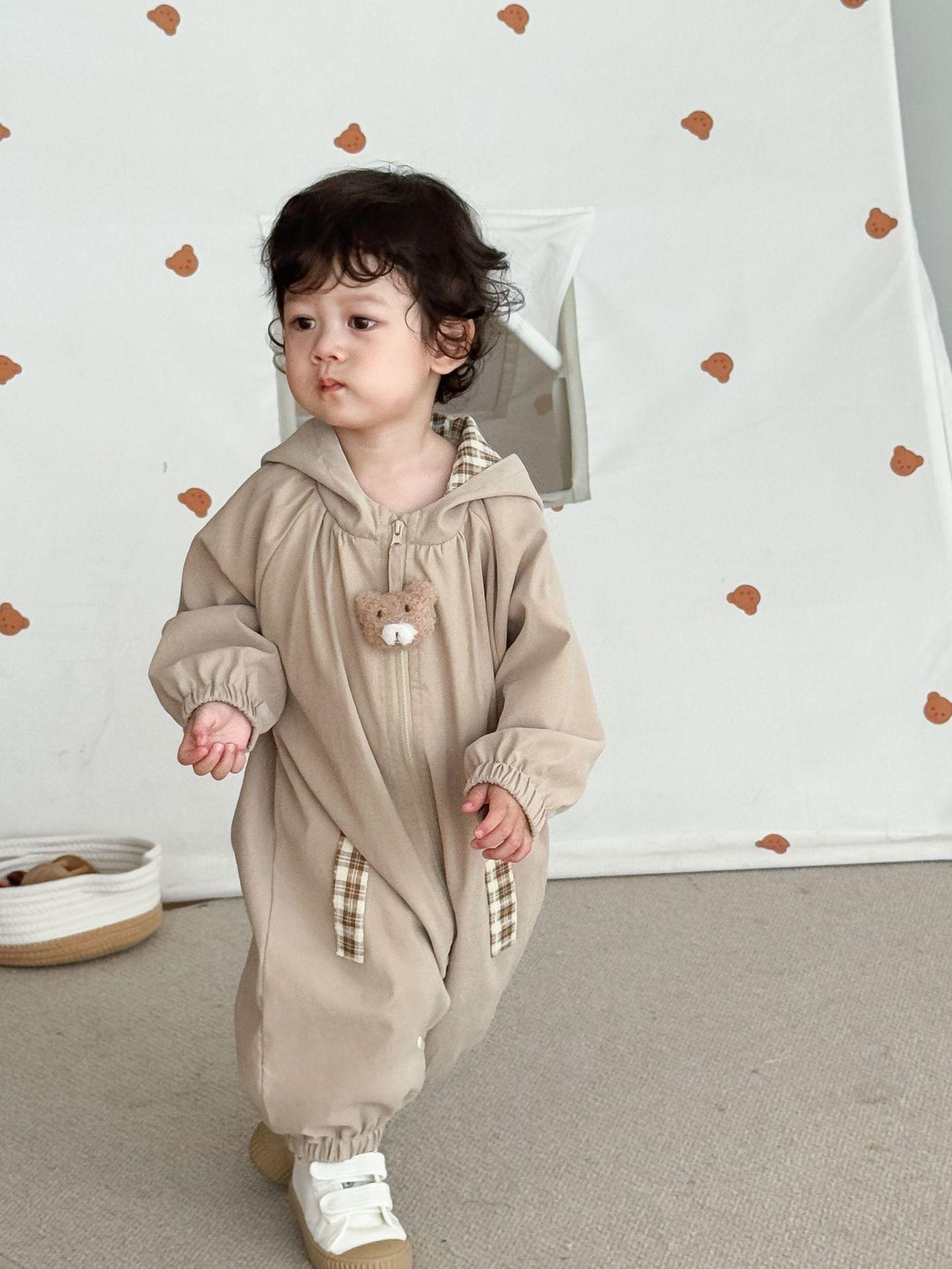 Mameluco de Moda para Bebé 2025 Nuevo Otoño Ropa para Recién Nacido Bebé Elegante Estilo Coreano Cuadros con Capucha
