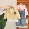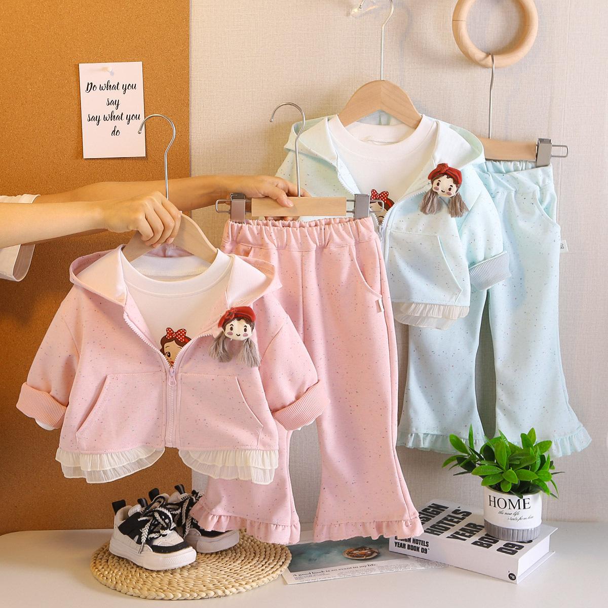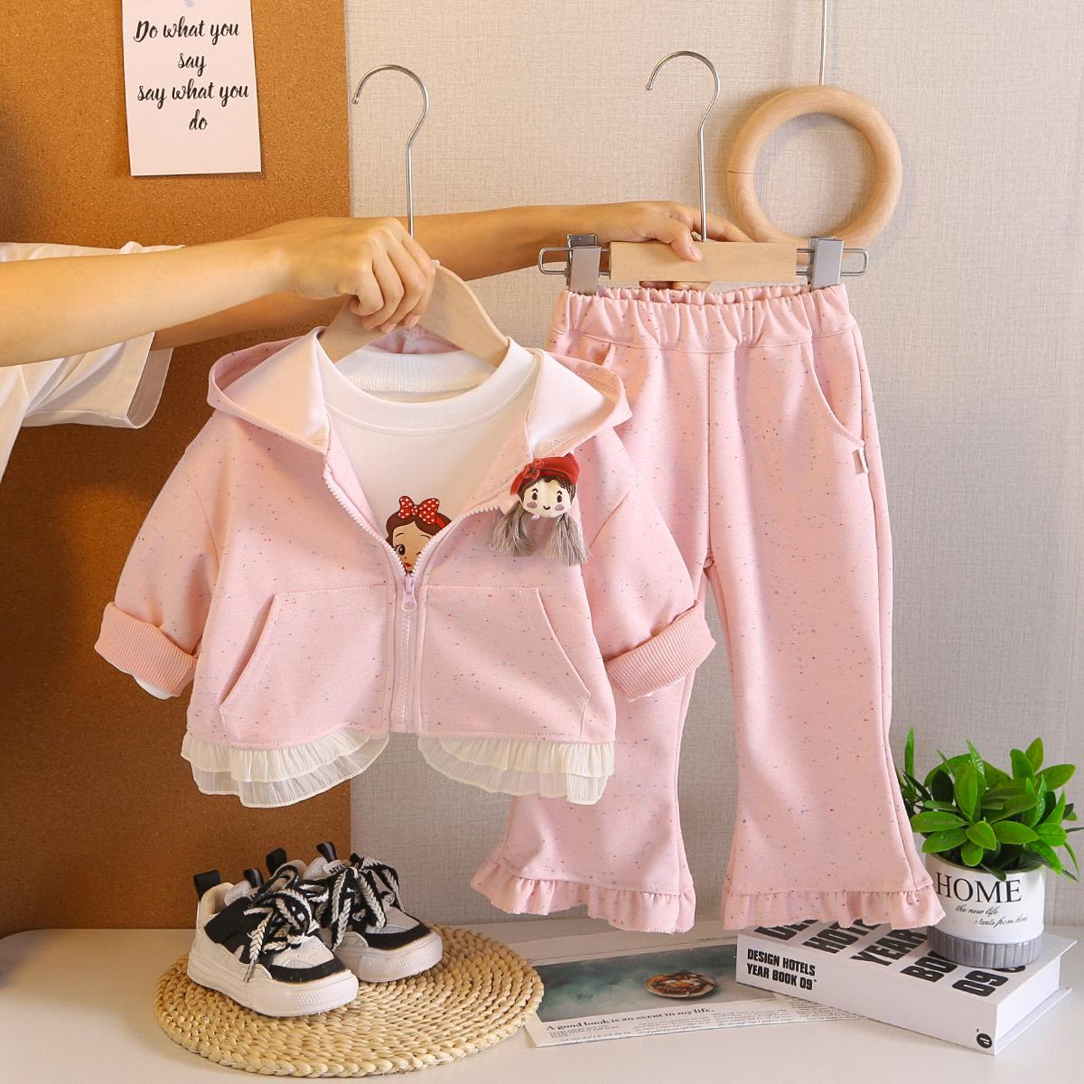 Ropa de Otoño para Bebé Niña 2025 Primavera y Otoño Nuevo Estilo Moda para Niñas Ropa Infantil Moderna Conjunto de Tres Piezas de Encaje a la Moda para Niñas