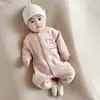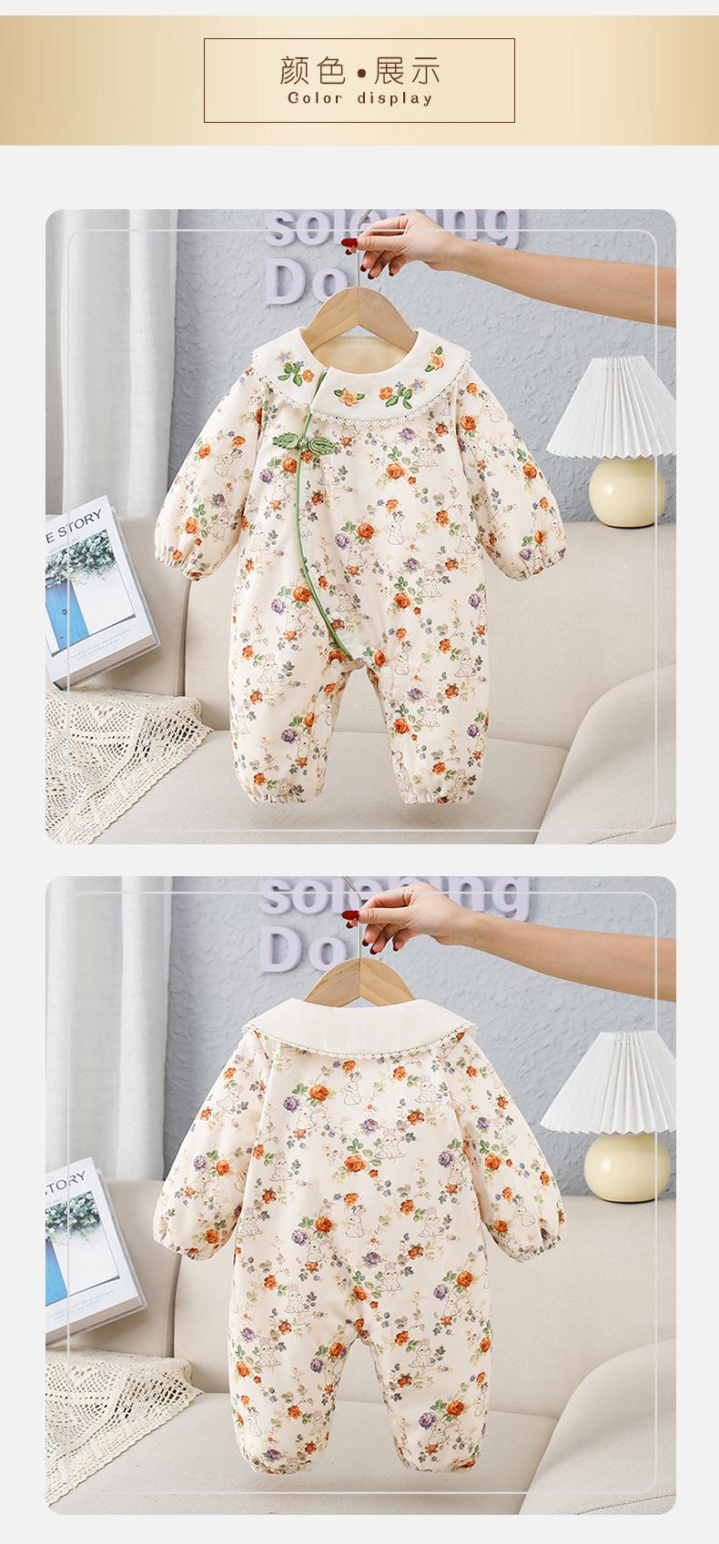 Ropa nueva de otoño e invierno para niños, mameluco grueso de invierno para bebé, traje casual floral para niños para gatear, mameluco de manga larga para bebé