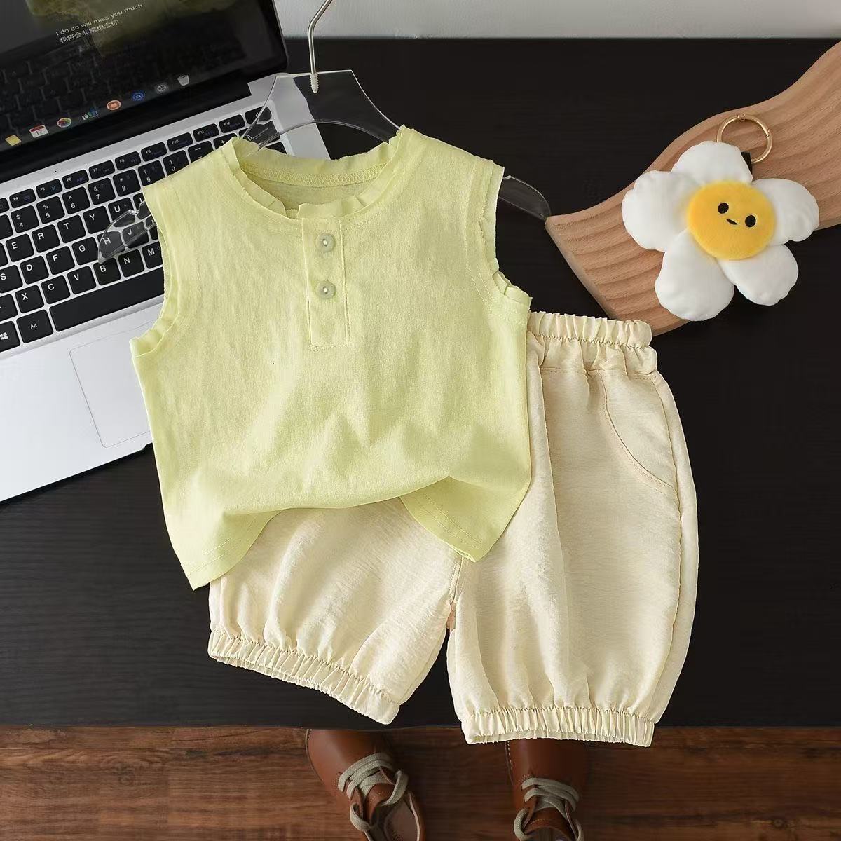 Compra Ropa de Verano para Niños Pequeños y Medianos, Nuevos Chalecos de Verano para Niñas, Trajes Elegantes, Conjuntos de Bebé de Dos Piezas sin Mangas y Delgados para Niños al por mayor en Joom.pro