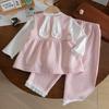 Conjunto de otoño para bebé niña estilo coreano de tirantes de dos piezas princesa a la moda ins de manga larga con cuello Peter Pan