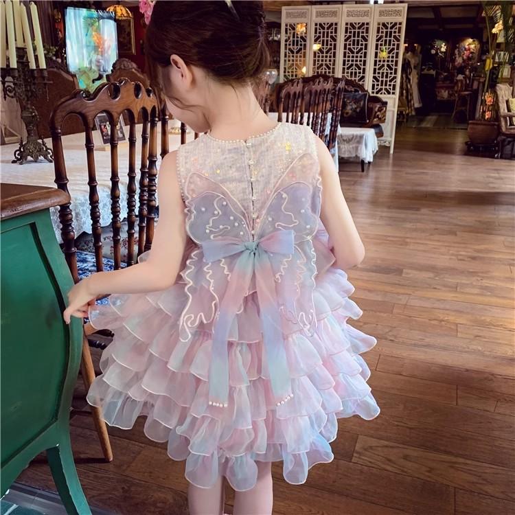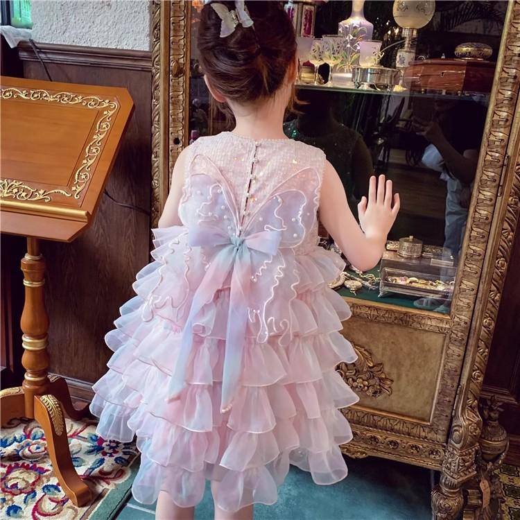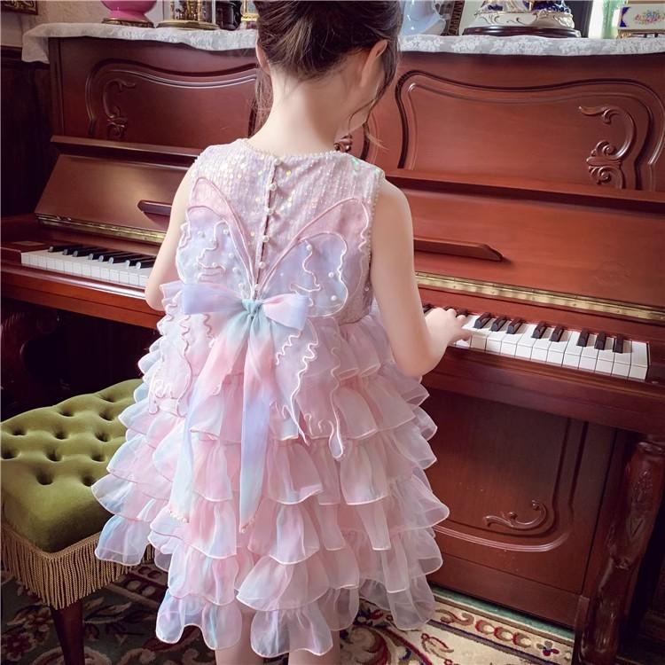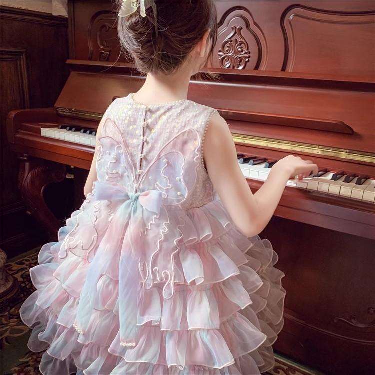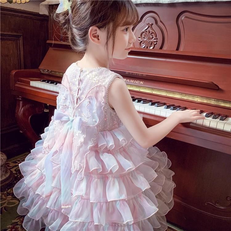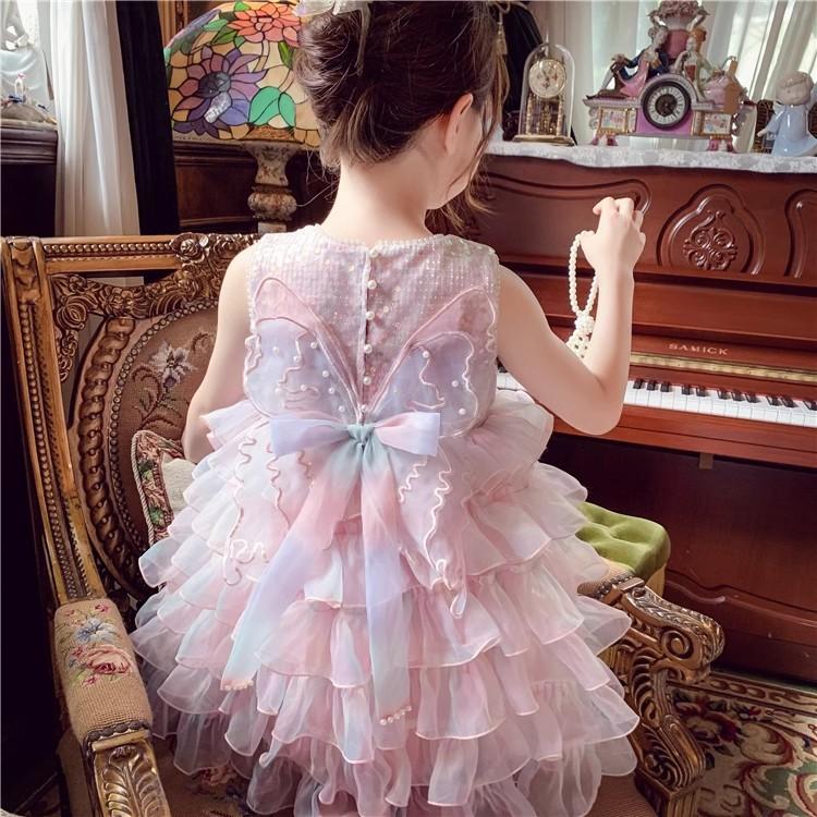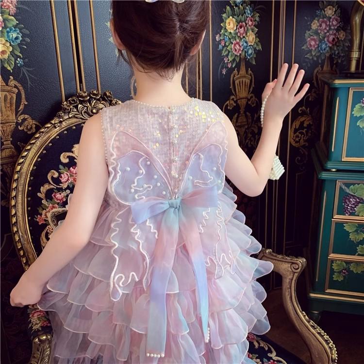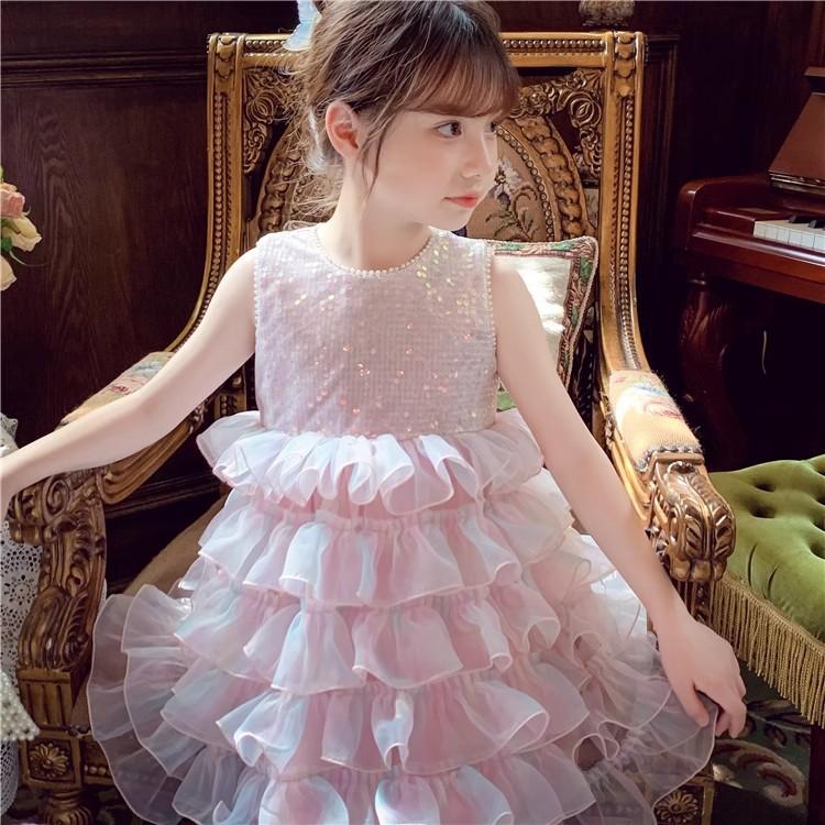 Vestido de niña Verano 2025 Nuevo Estilo Vestido de Princesa de Malla con Lentejuelas para Niños Vestido de Cumpleaños para Niña