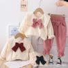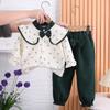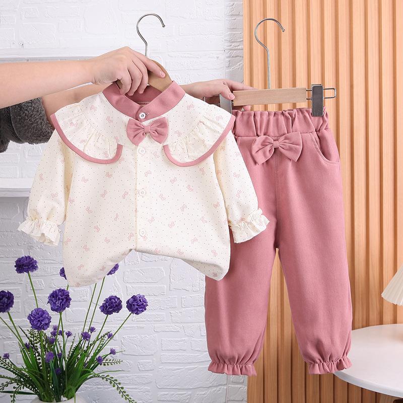 Conjunto Otoñal Lindo de Cuello Peter Pan para Niñas 2025 Nuevo Estilo Bebé Niña Otoño Moda Manga Larga Lazo Cuello Alto Conjunto