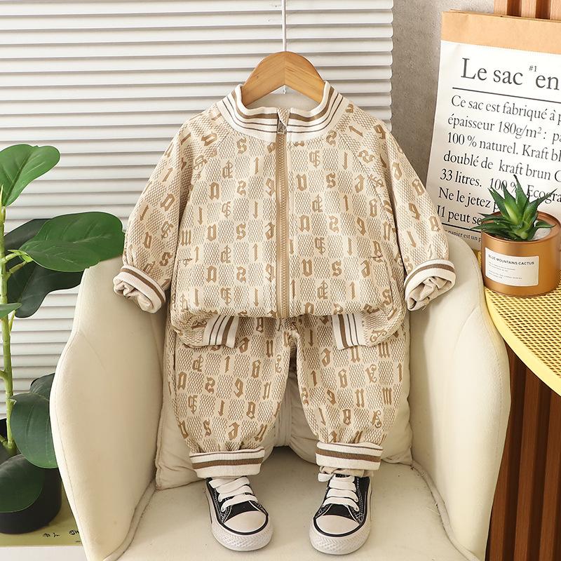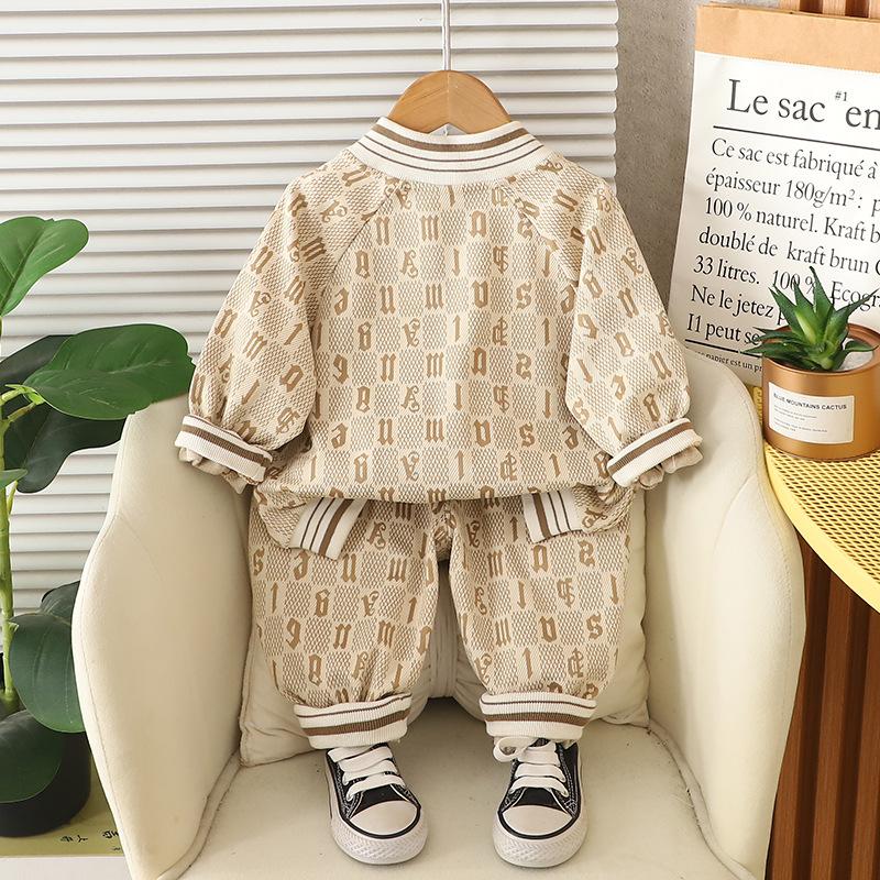 Cárdigan de punto para niños Primavera y Otoño 2025 Nuevos Tops Cárdigan para Niños Deportes Letras Cuadradas Otoño Conjunto de Dos Piezas