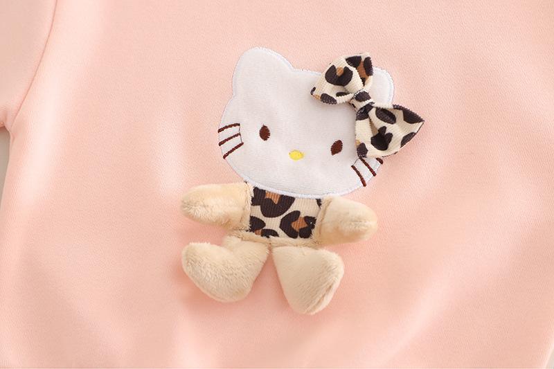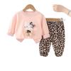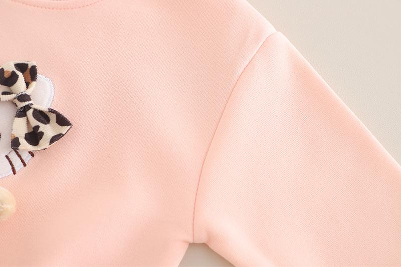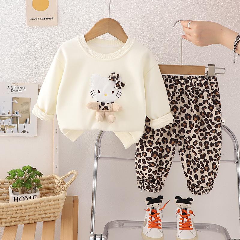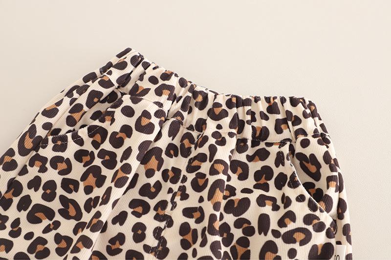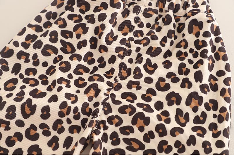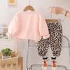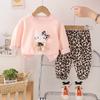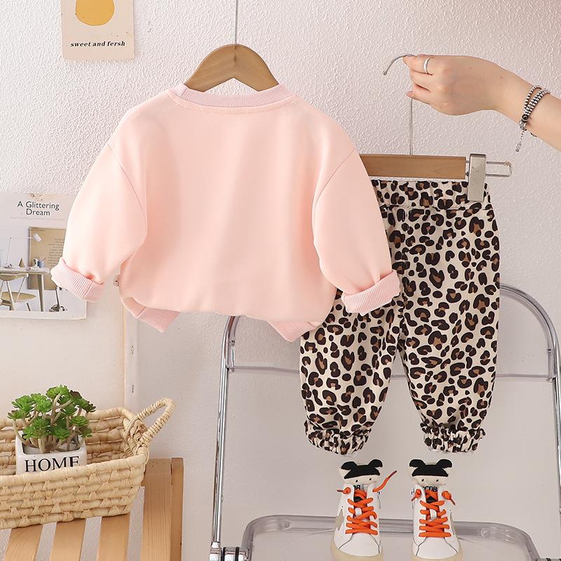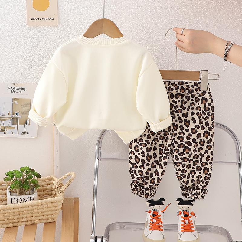 Conjunto Casual de Estampado de Leopardo para Niñas 2025 Nuevo Otoño Primavera Sudadera con Lazo Conjunto de Dos Piezas Ropa Deportiva Moderna