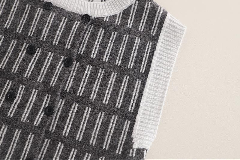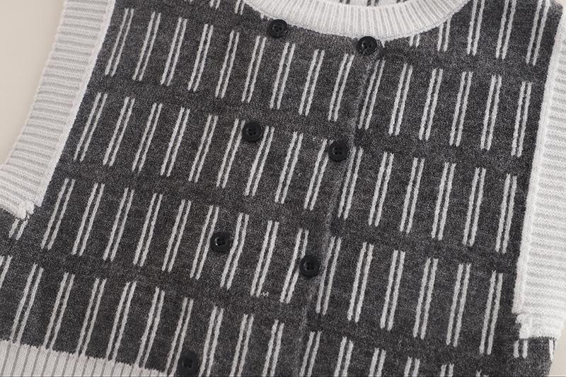 8377 vertical stripe button-up sweater vest three-piece set dark brown, 8377 vertical stripe button-up sweater...