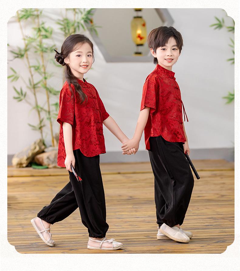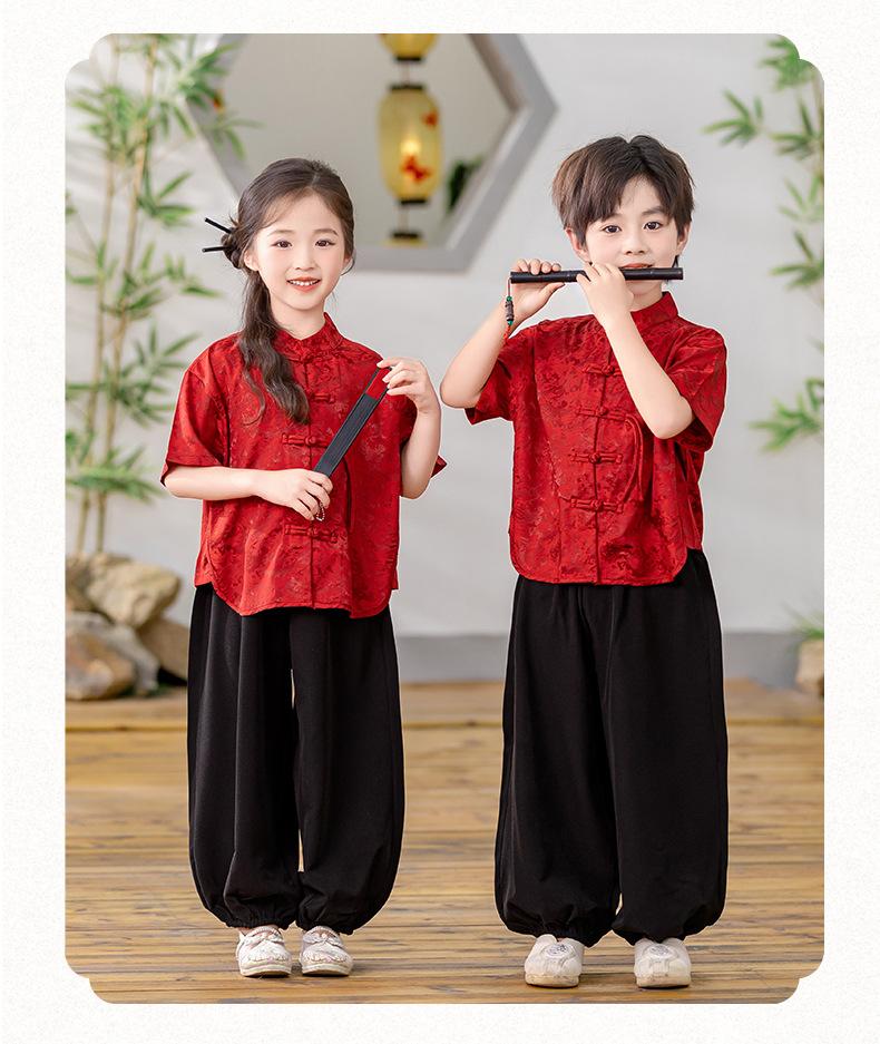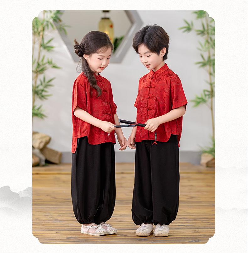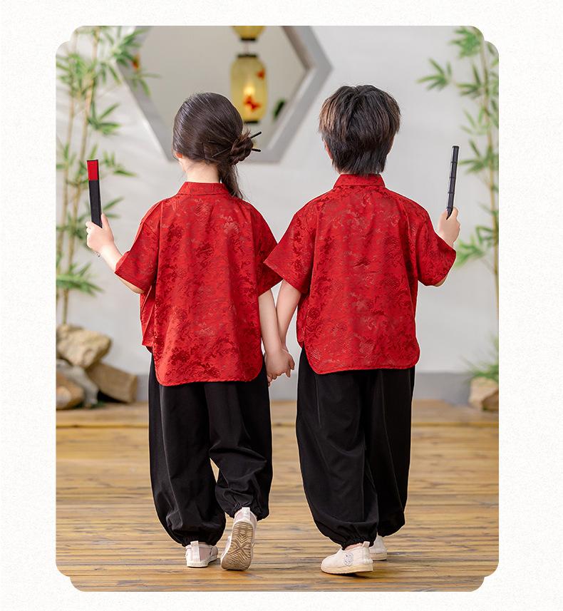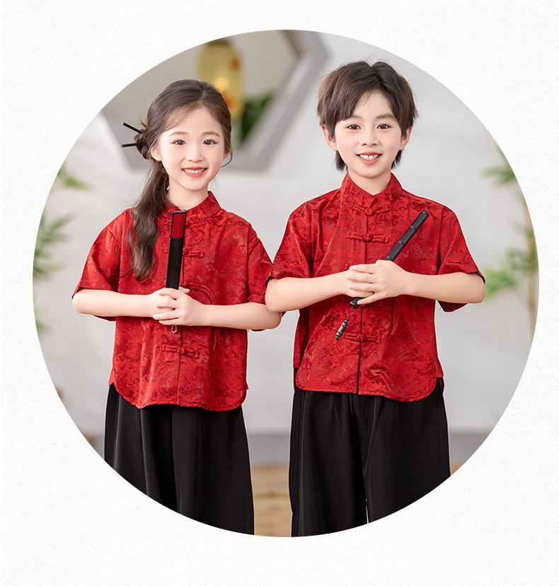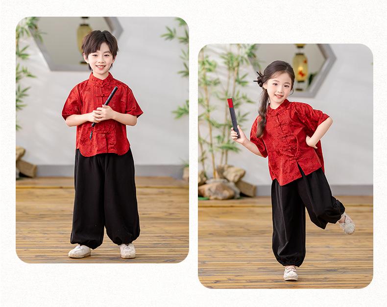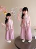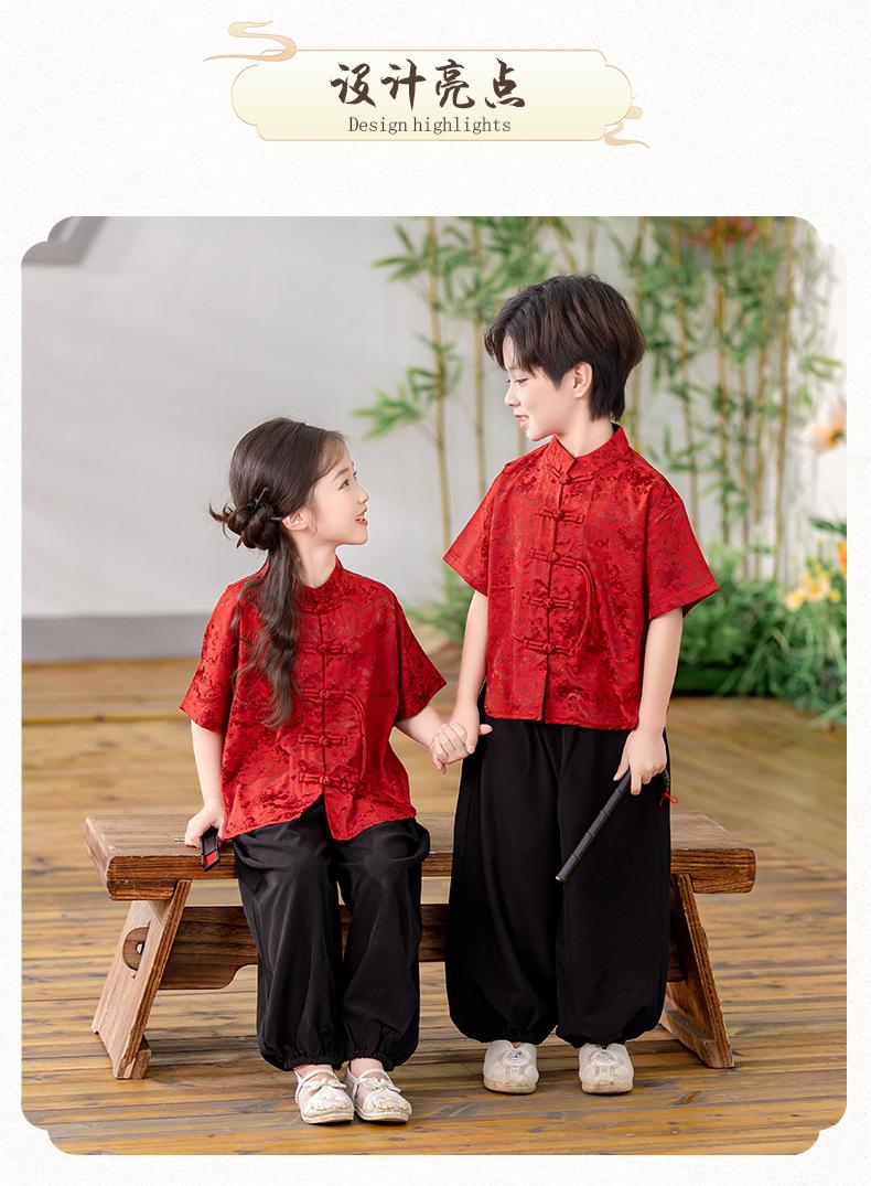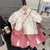 Traje Hanfu para niños Verano 2025 Nuevo Nuevo Camisa China de Manga Corta Dos piezas Bebé Vestido de un año Traje Tang