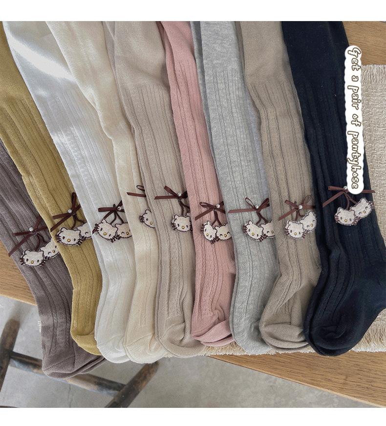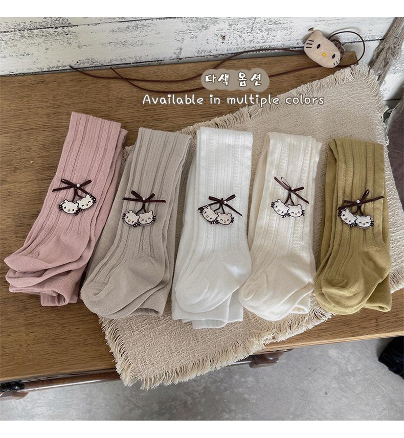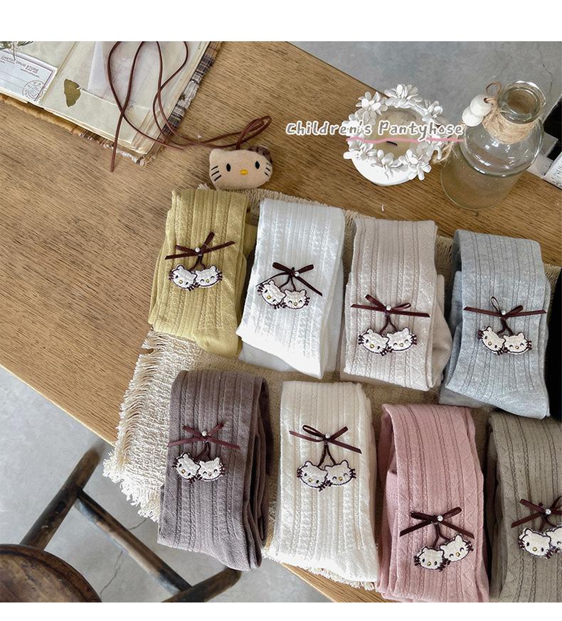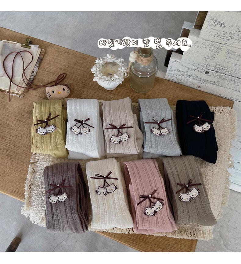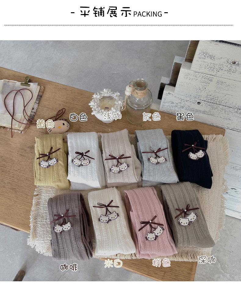 Calcetines leggings para niñas Minliu estilo otoño e invierno versión coreana medias tejidas para niños lazo gato calcetines pantalones de bebé