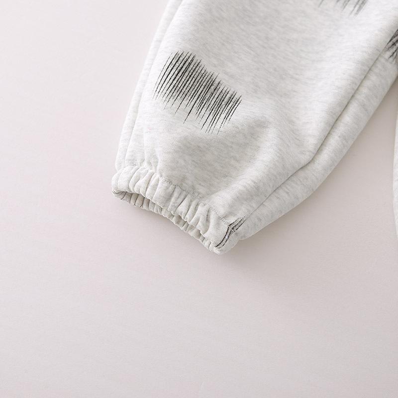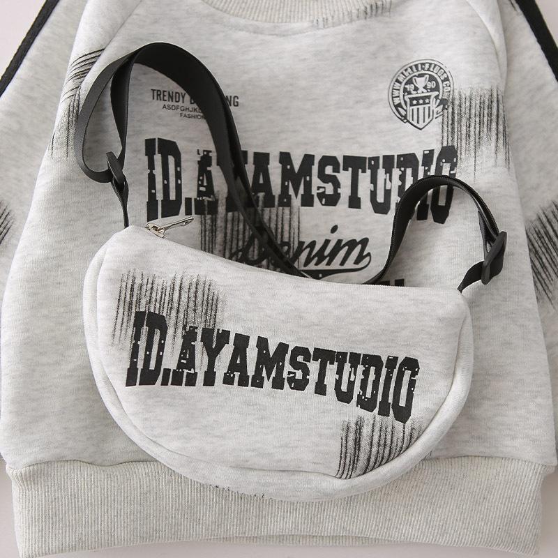 Grey Q2517 Crew Neck ID Letter Bag Long Sleeve Set