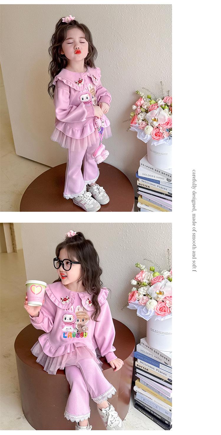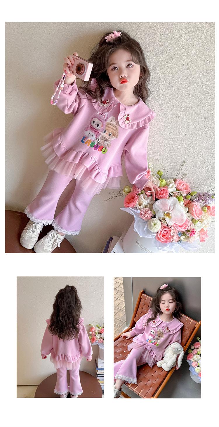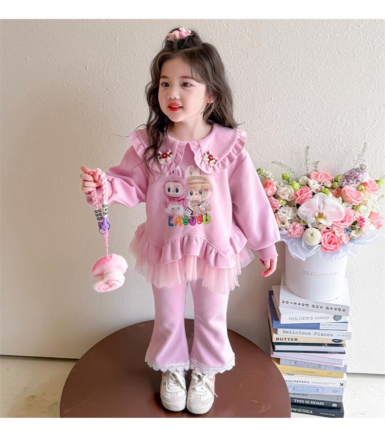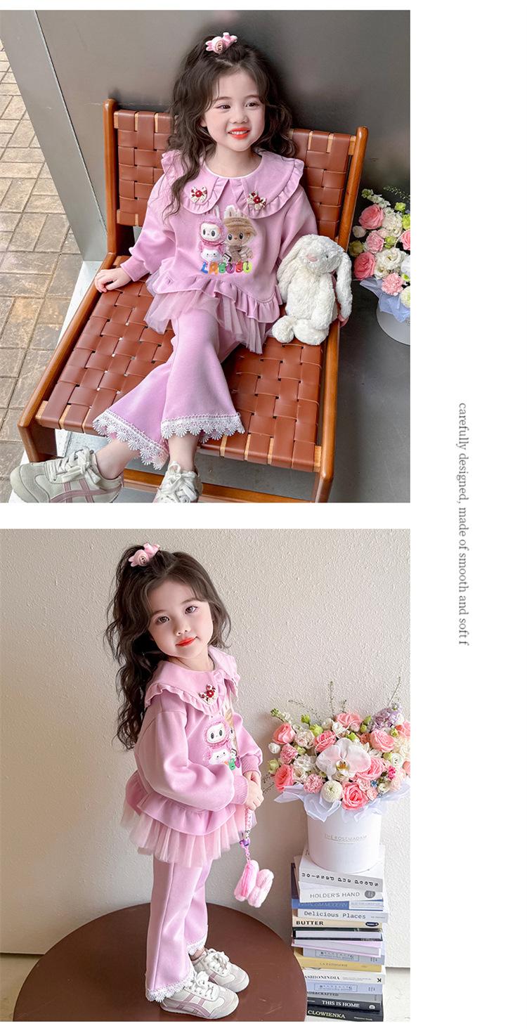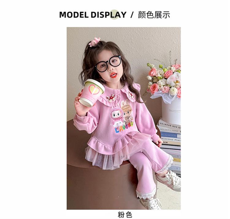 Conjunto de Primavera y Otoño para Niñas 2025 Nuevo Estilo Bebé Niña Sudadera de Moda con Cuello Peter Pan Casual Dibujos Animados Encaje Conjunto de Dos Piezas Tendencia