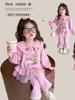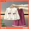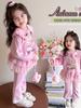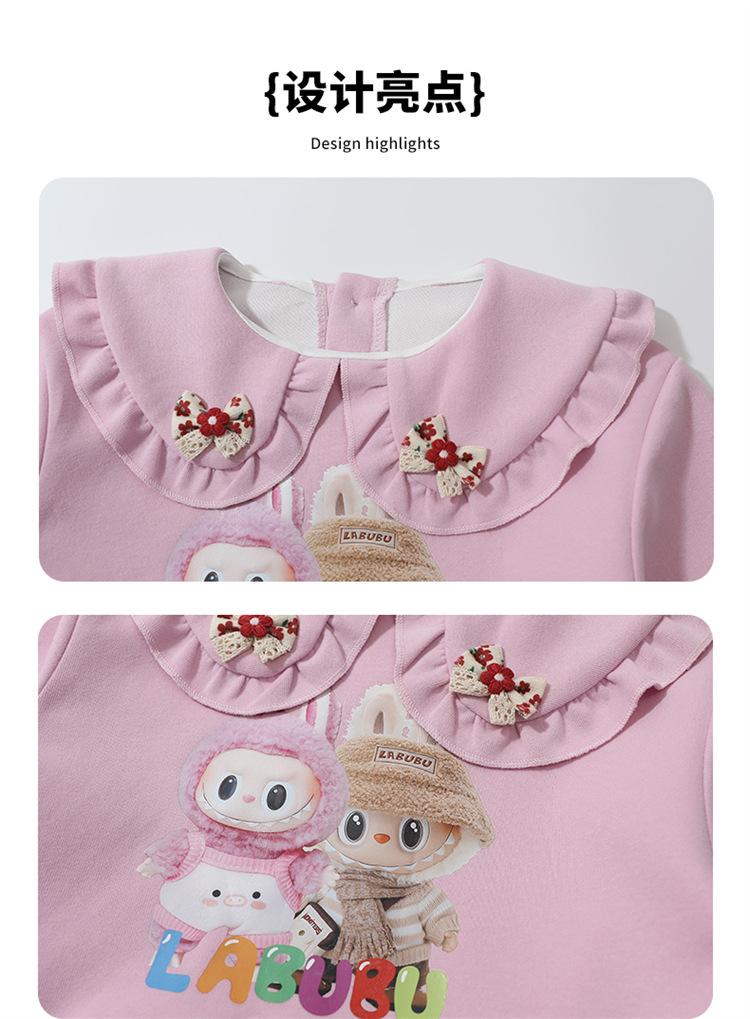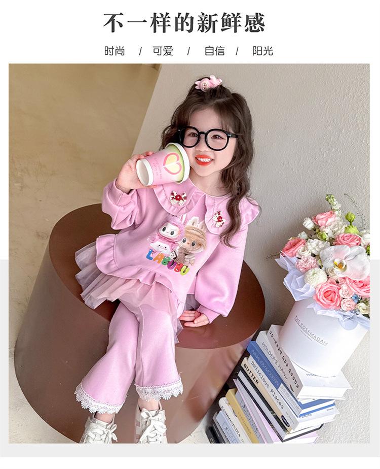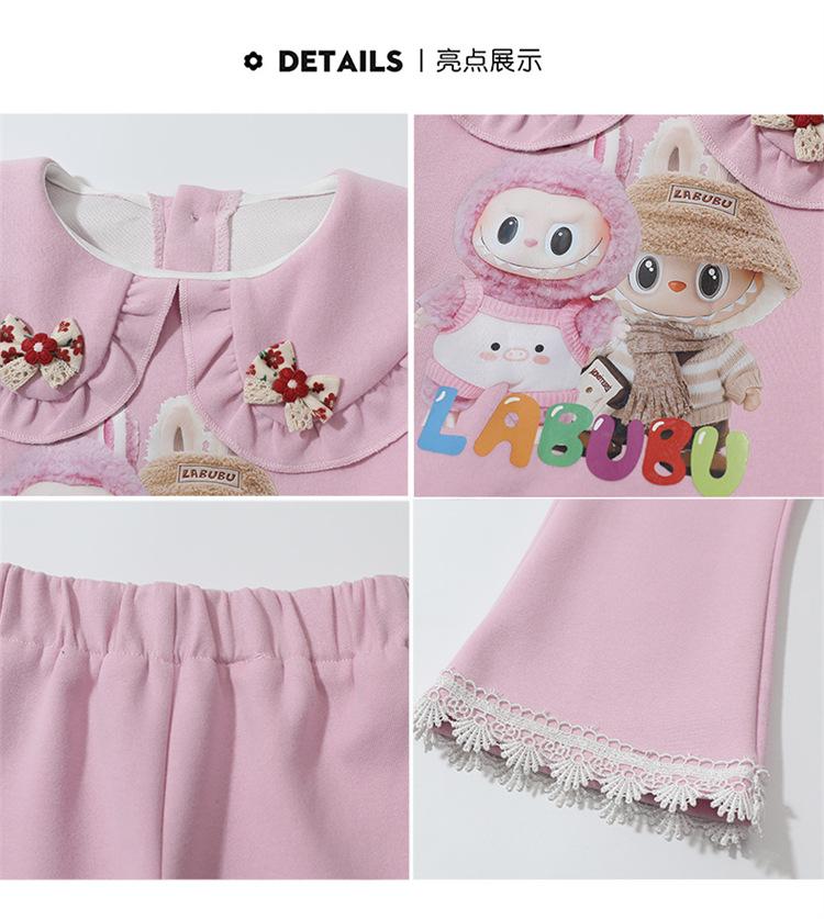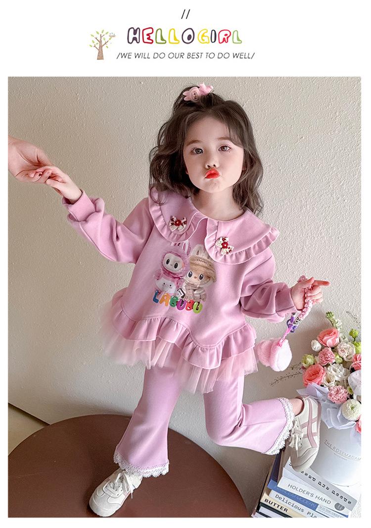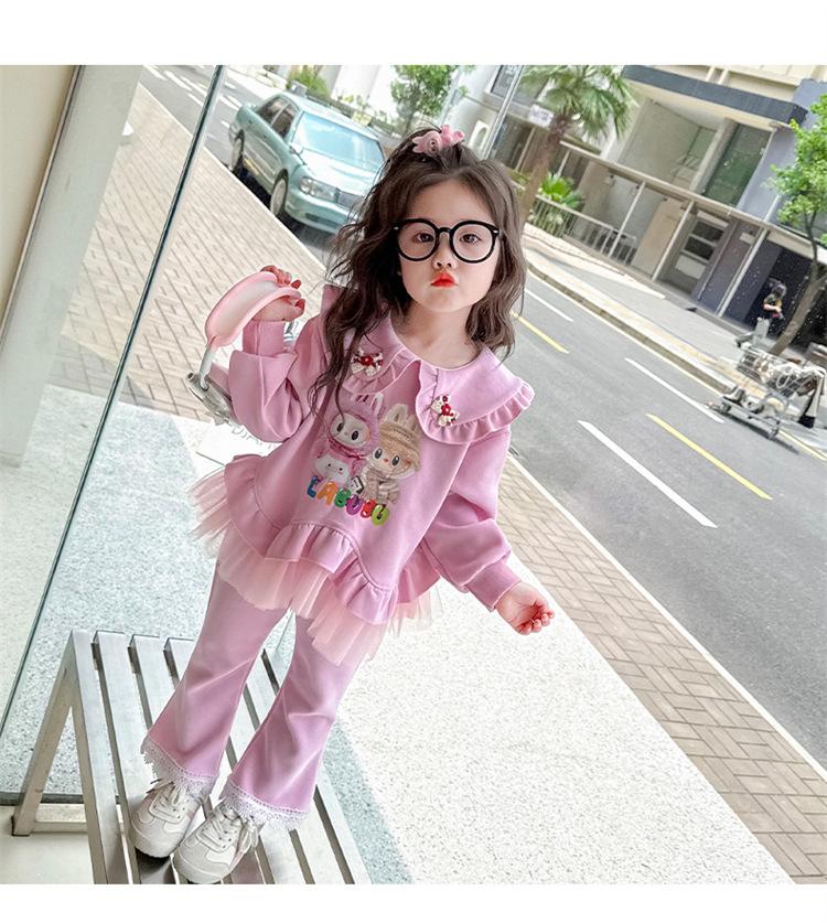 Conjunto de Primavera y Otoño para Niñas 2025 Nuevo Estilo Bebé Niña Sudadera de Moda con Cuello Peter Pan Casual Dibujos Animados Encaje Conjunto de Dos Piezas Tendencia