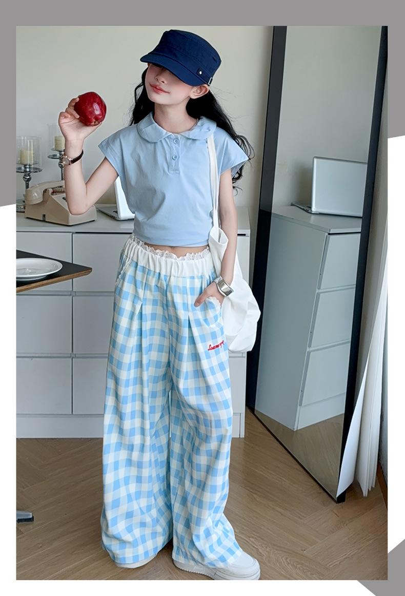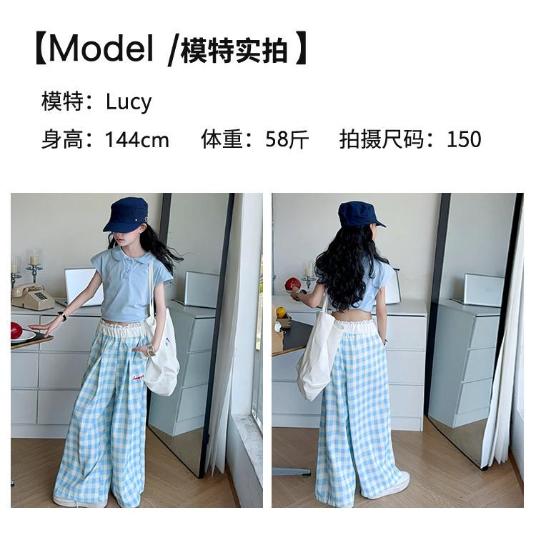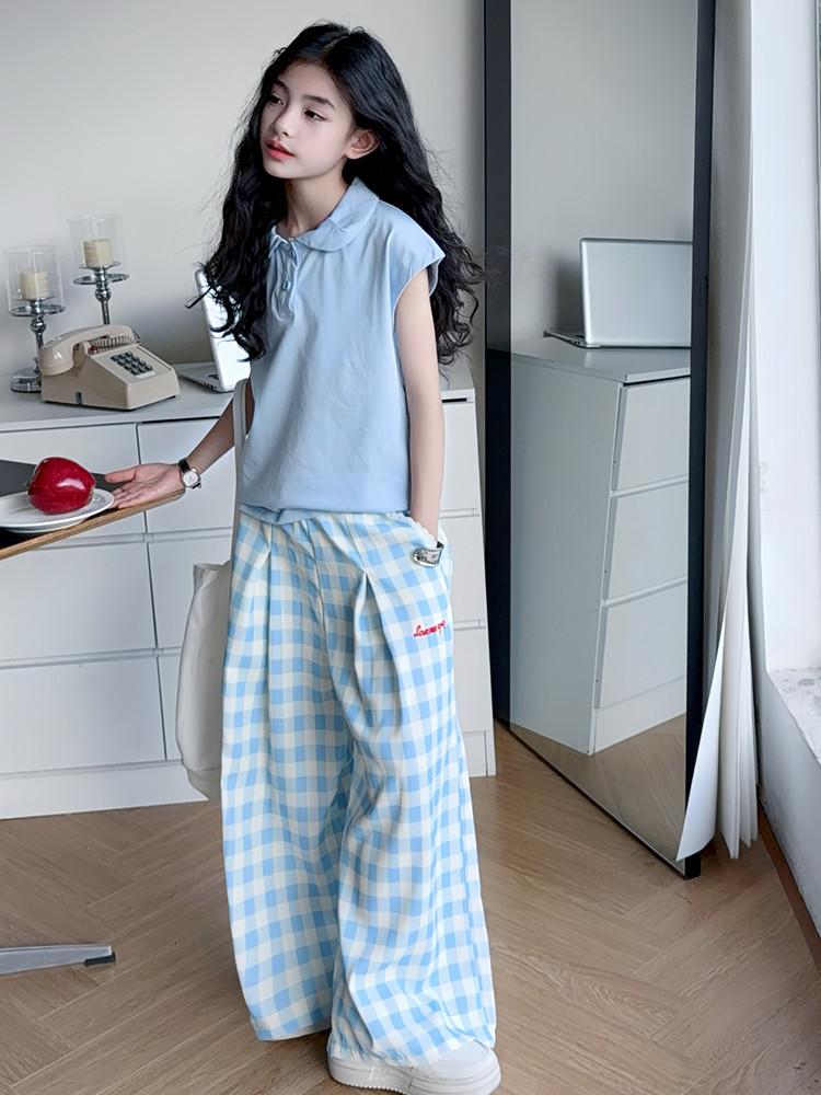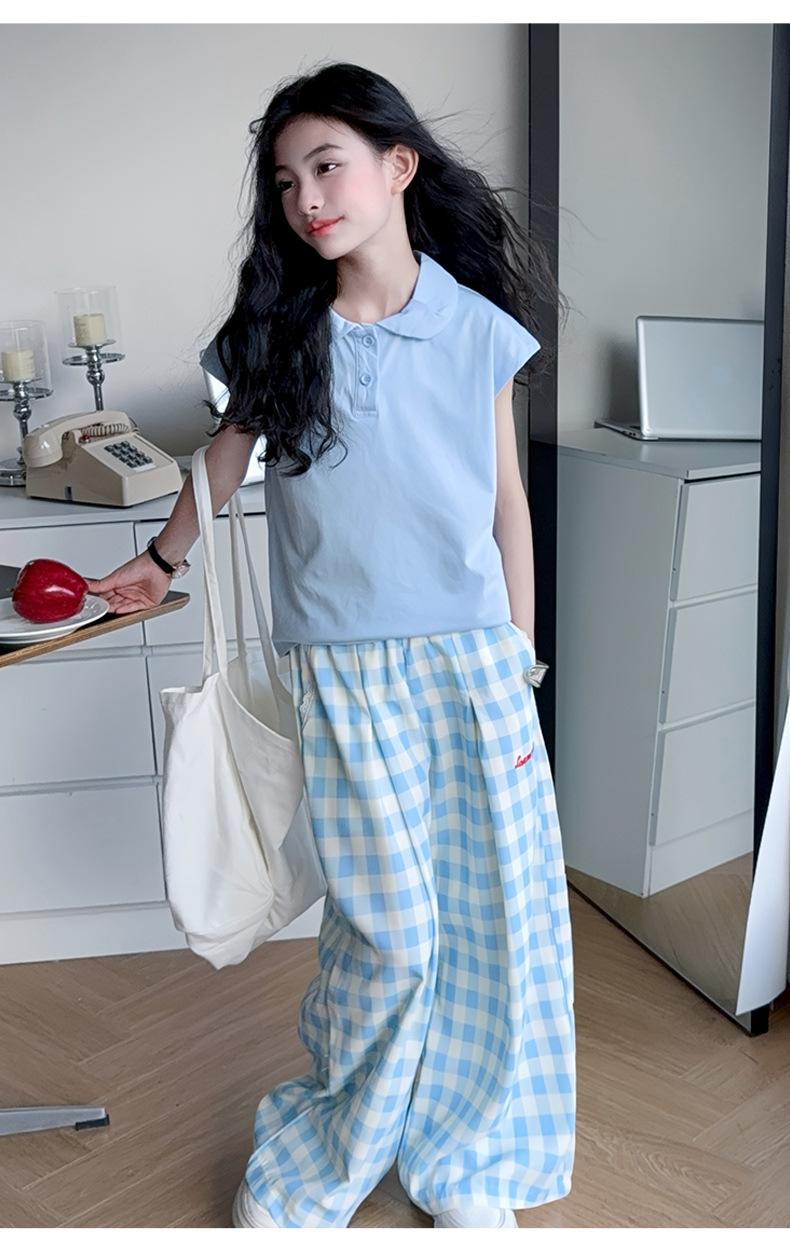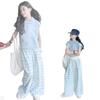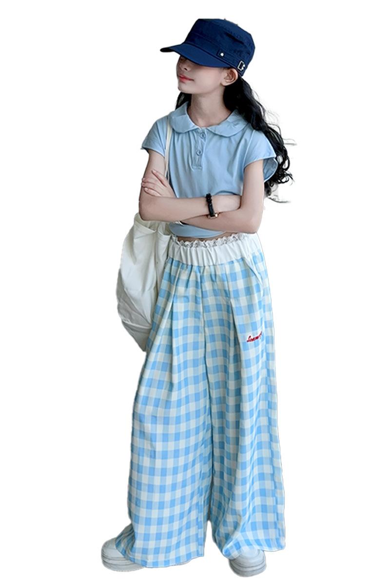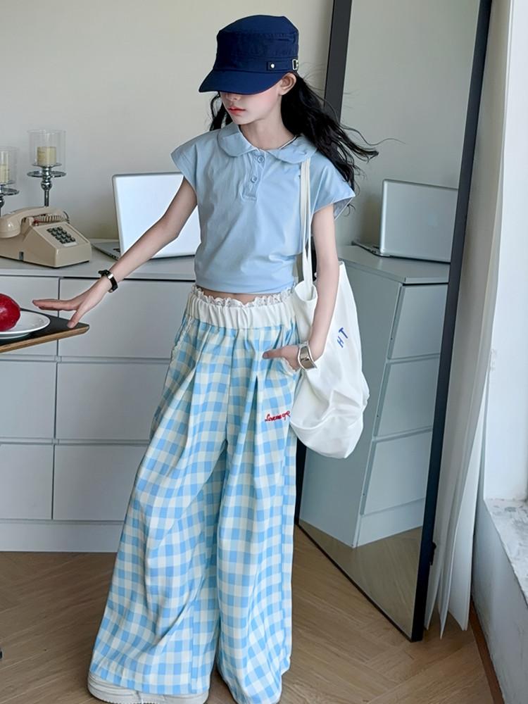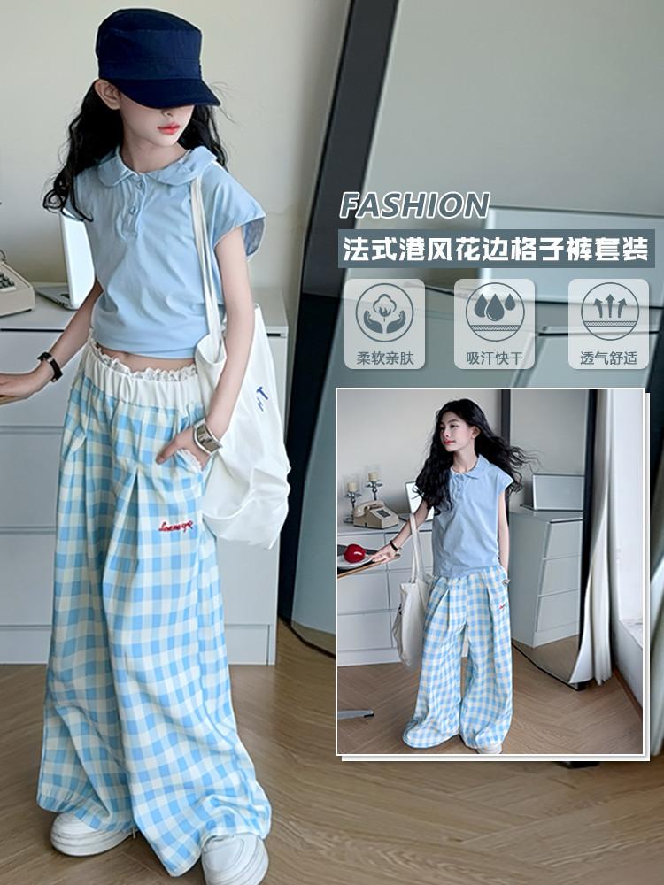 Conjunto de Verano de Moda para Niñas 2025 Nuevo Top Elegante Coreano de Manga Corta y Pantalones de Pierna Ancha Conjunto de Dos Piezas para Niñas Mayores