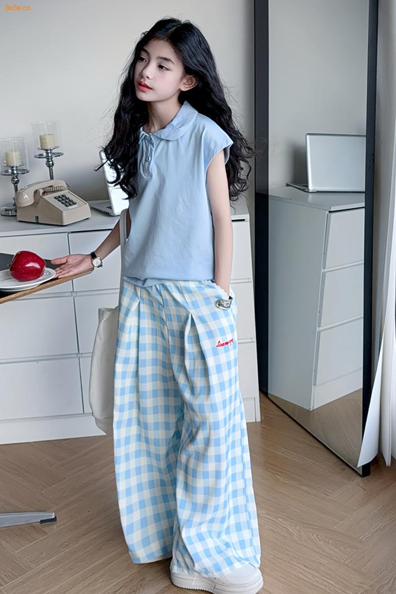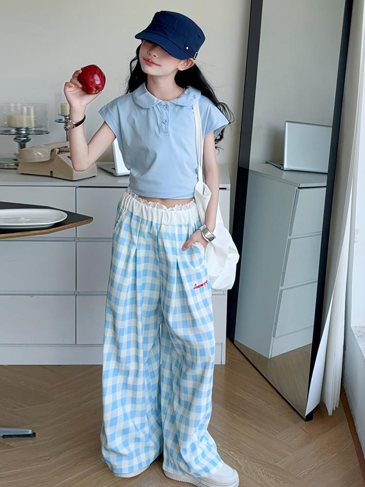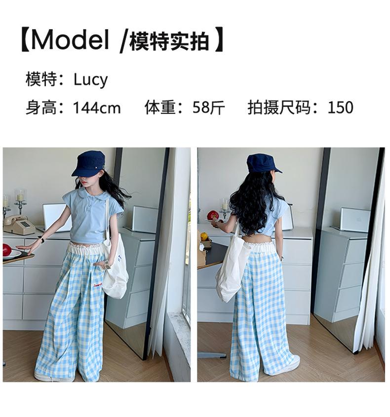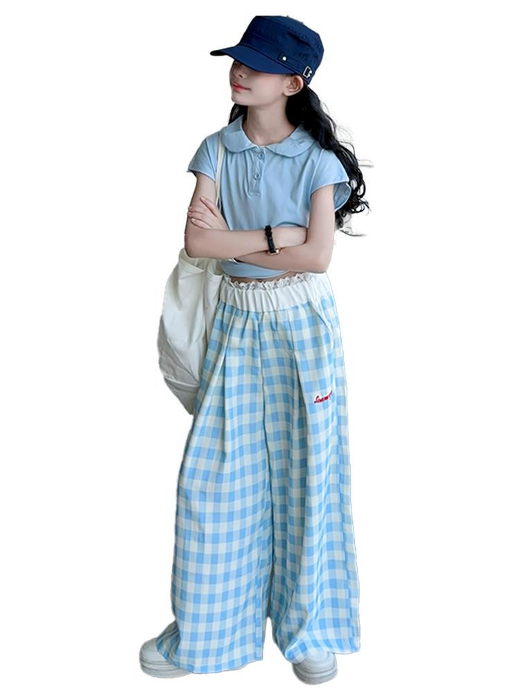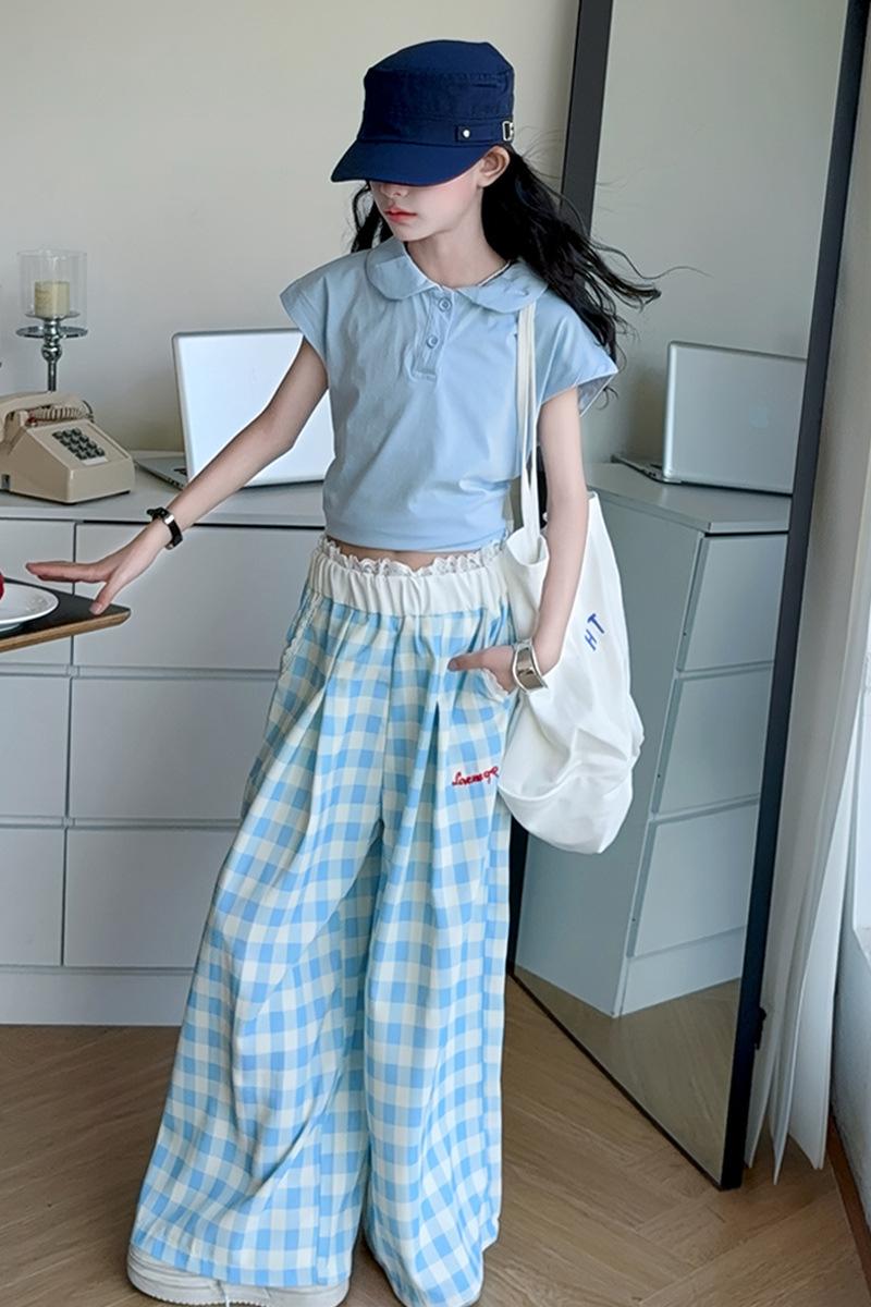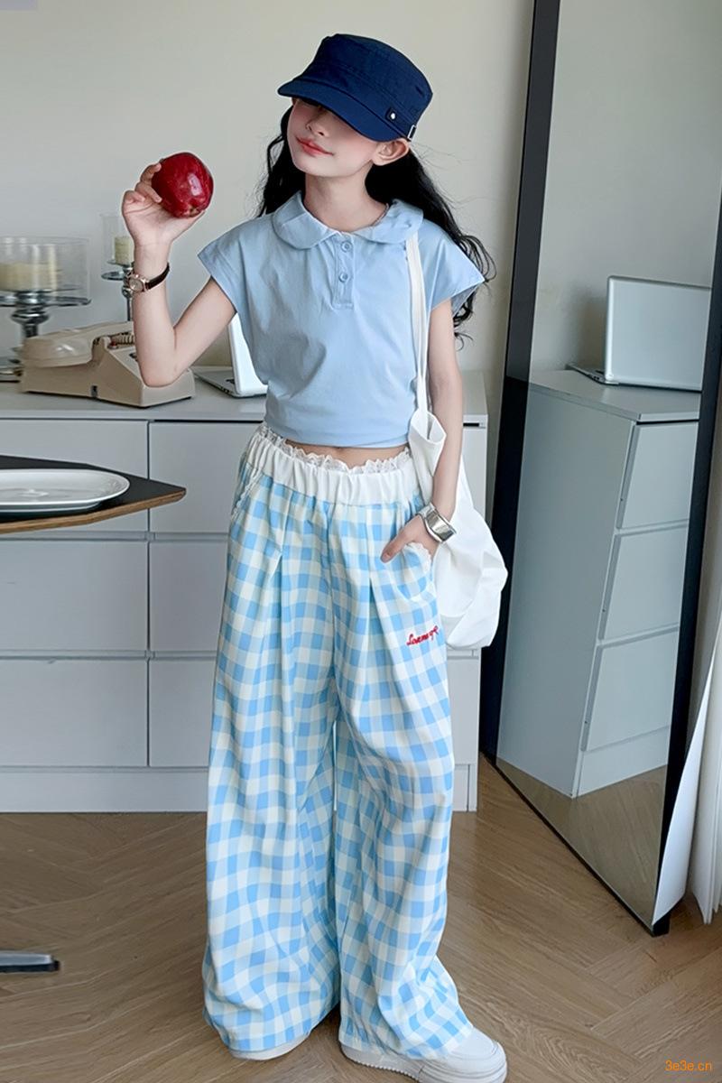 Conjunto de Verano de Moda para Niñas 2025 Nuevo Top Elegante Coreano de Manga Corta y Pantalones de Pierna Ancha Conjunto de Dos Piezas para Niñas Mayores